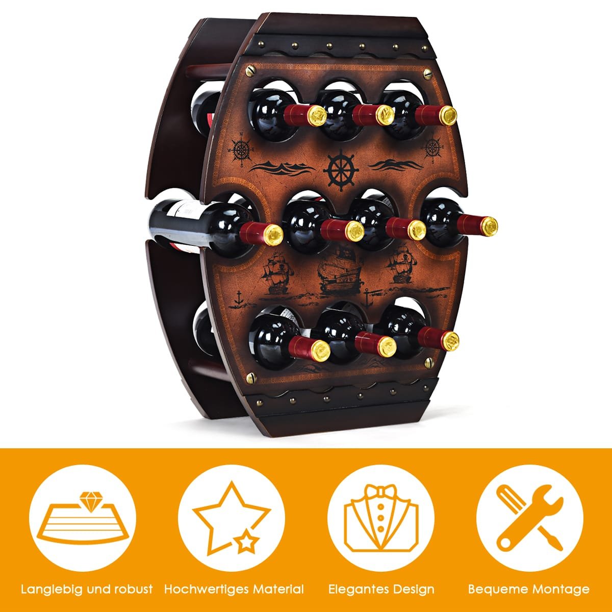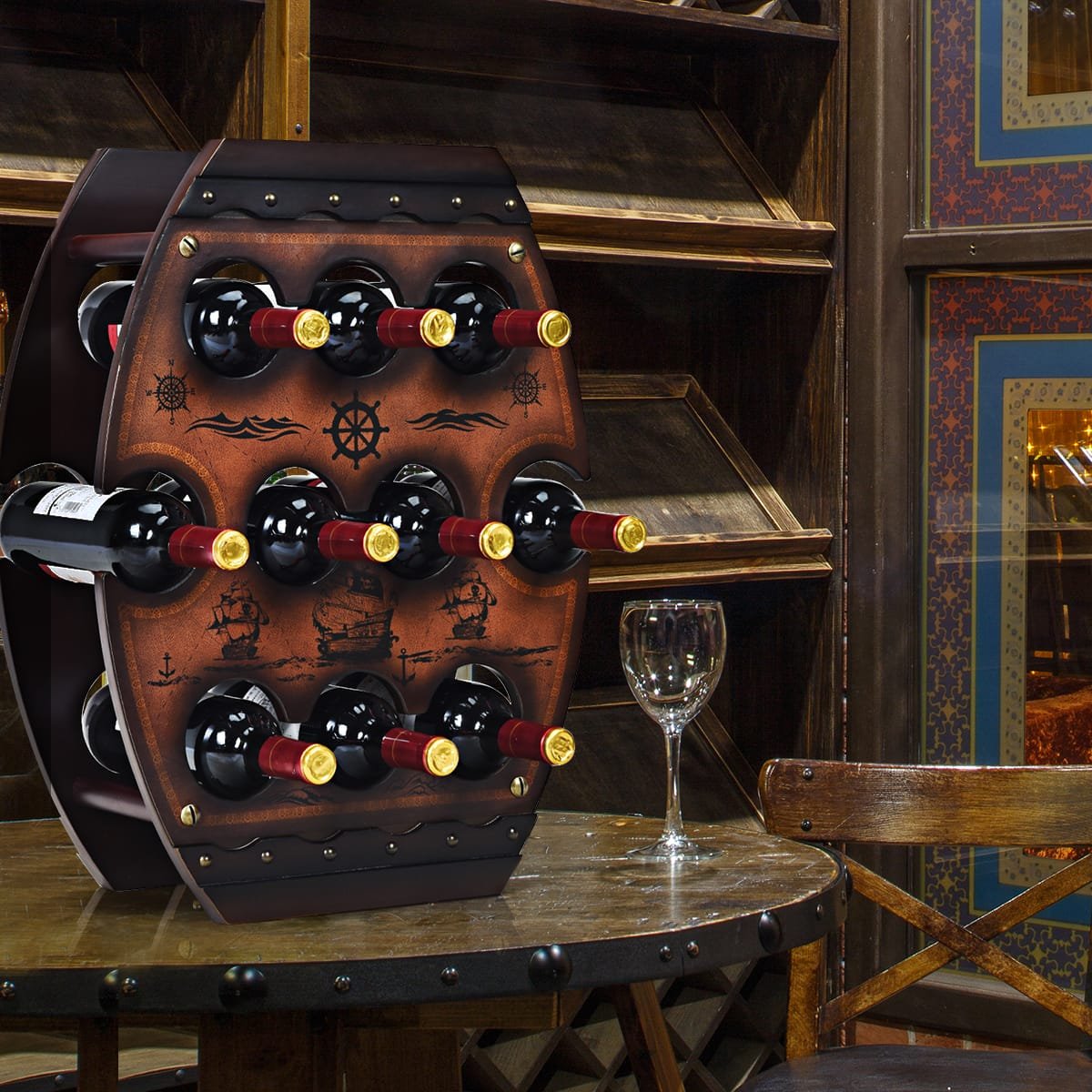 Atraskite stilingą ir praktišką sprendimą savo vyno kolekcijai laikyti. Šis vyno stovas ne tik padės palaikyti optimalias sąlygas jūsų vynui išsaugoti, bet ir suteiks jūsų namams elegancijos bei vintage prieskonio. Puikiai tinka įvairiose erdvėse – nuo virtuvės iki vyno rūsio.