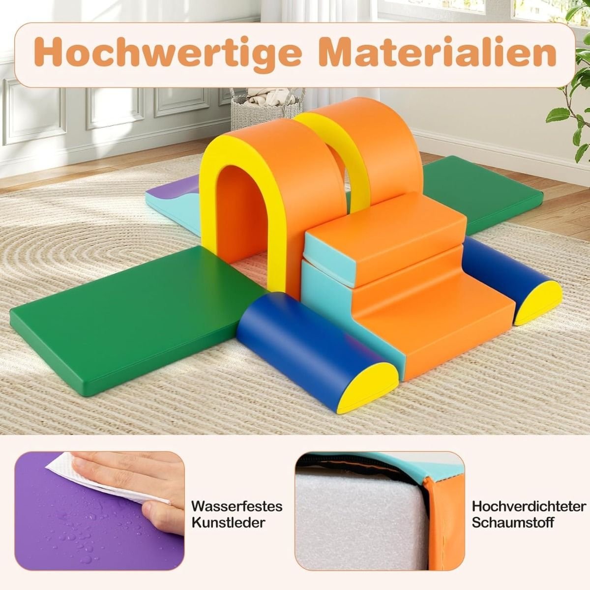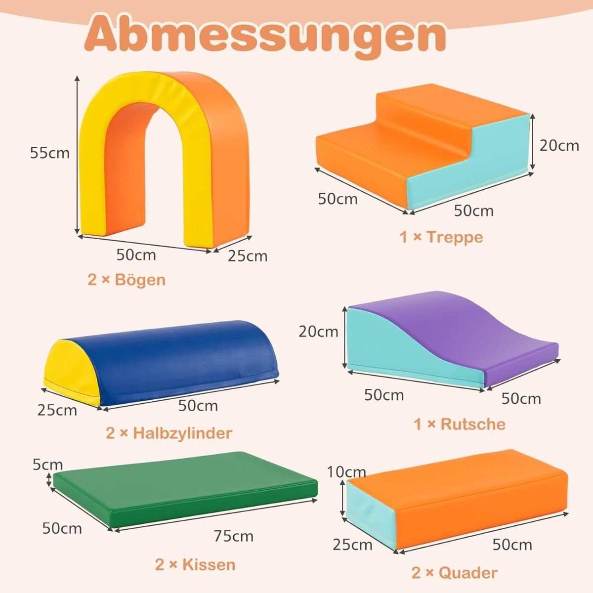 Suteikite vaikams neribotas žaidimo ir tyrinėjimo galimybes su šiuo universaliu 10 dalių minkštų putplasčio blokelių rinkiniu. Sukurtas skatinti kūrybiškumą, fizinį aktyvumą ir mokymąsi per žaidimą, šis rinkinys leis mažiesiems statyti, kopti ir čiuožinėti be jokių apribojimų.