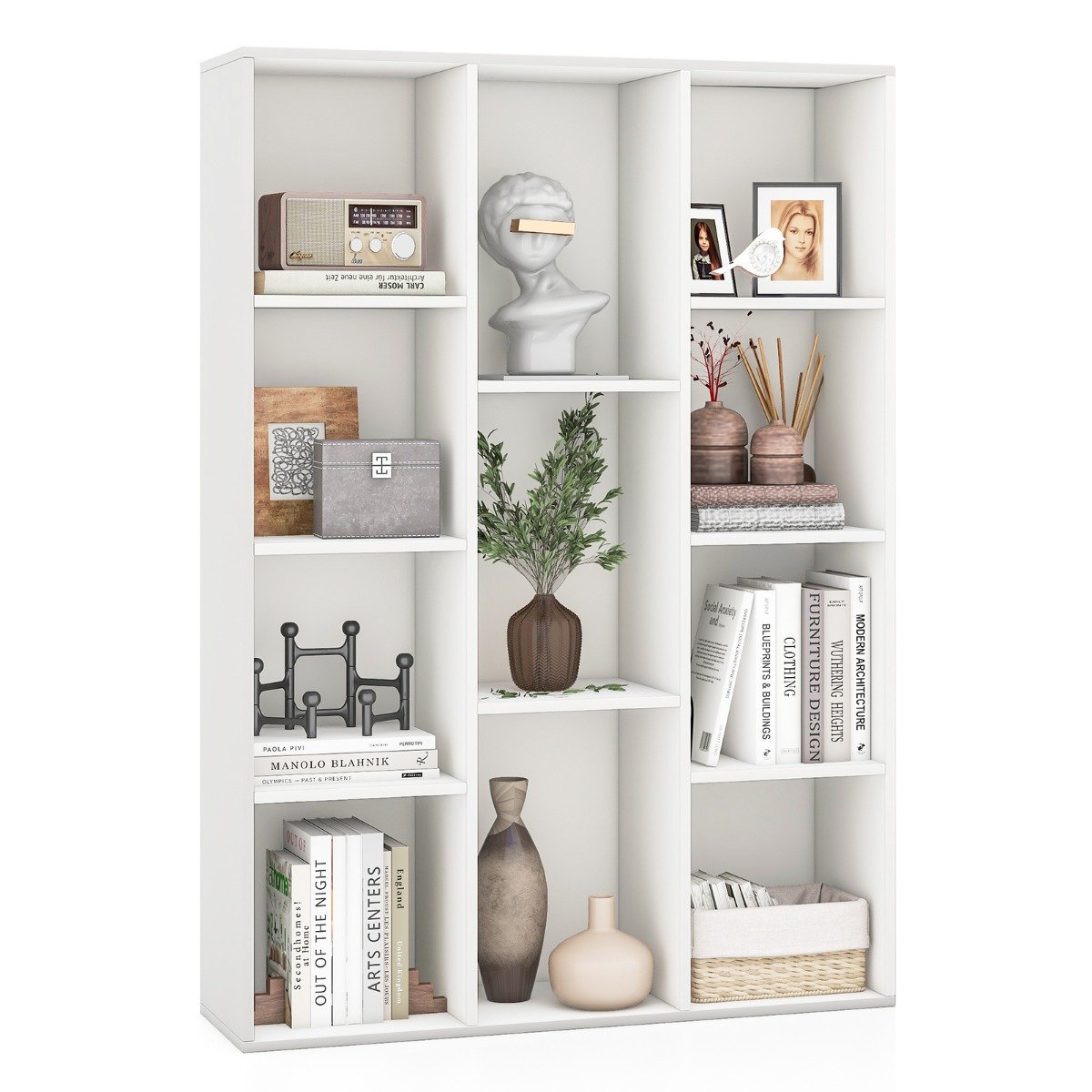 11 skyrių knygų lentyna su apsaugomis nuo apvirtimo (Balta)