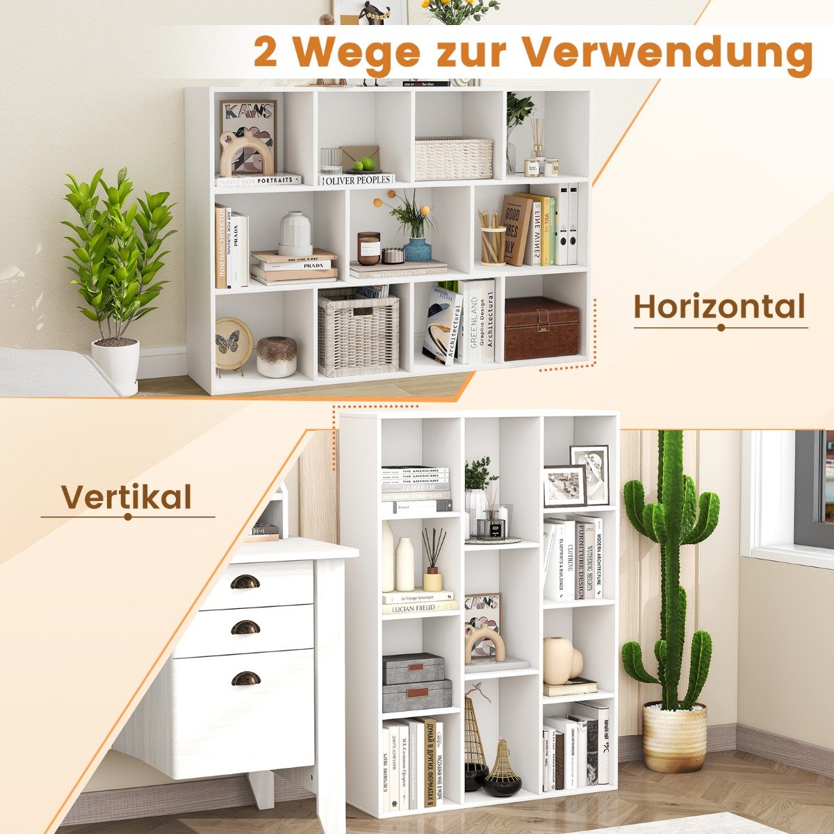 Padidinkite savo namų ar biuro erdvę su šia universalia 11 skyrių knygų lentyna. Šis daugiafunkcis baldas suteikia pakankamai vietos knygoms, dekoracijoms ir kitiems daiktams tvarkingai laikyti. Dėl galimybės statyti horizontaliai arba vertikaliai, lentyna puikiai dera prie jūsų interjero. Papildomam saugumui įrengtos dvi apsaugos nuo apvirtimo, užtikrinančios stabilumą.