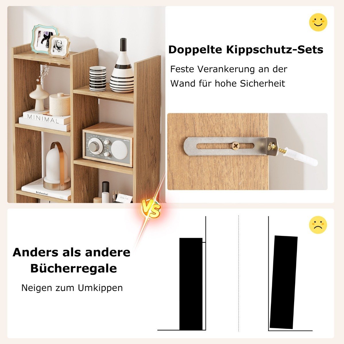 Stilingai tvarkykite savo daiktus su šia unikalia 12 pakopų knygų lentyna. Siūlanti 10 atvirų skyrių ir 2 viršutines lentynas, ji suteikia daug vietos laikymui. Skirtingai nuo kitų lengvai apvirstančių lentynų, ši pasižymi tvirta medžio konstrukcija ir 2 apsaugomis nuo apvirtimo, užtikrinančiomis papildomą stabilumą. Medžio formos dizainas suteikia modernią estetiką jūsų interjerui, paverčiant ją funkcionaliu ir menišku akcentu.