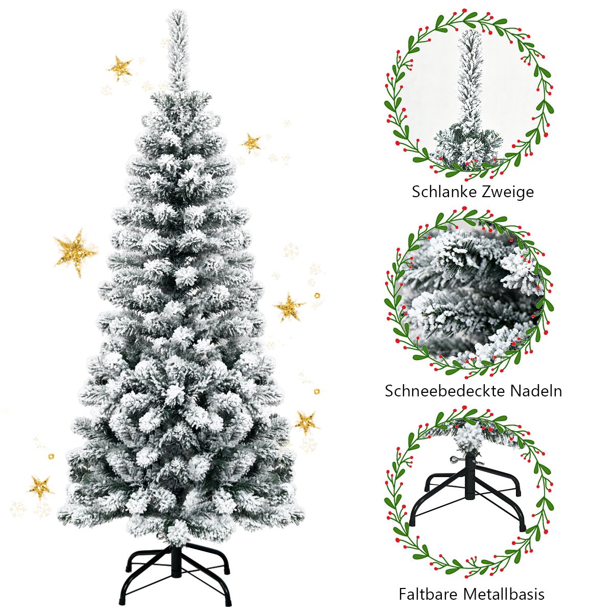 135 cm aukščio dirbtinė eglutė su sniego efektu ir tvirtu metaliniu stoveliu (Žalia ir balta)