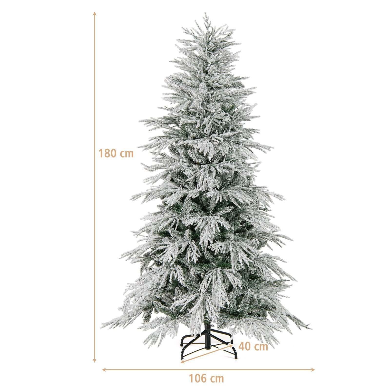 Sukurkite kerinčią žiemos pasaką su šia 180 cm aukščio dirbtine eglute, kurią puošia 594 sniegu padengtos šakų viršūnėlės ir 250 šiltų baltų LED lempučių. Ji suteiks Jūsų namams, biurui ar parduotuvei išskirtinio jaukumo.