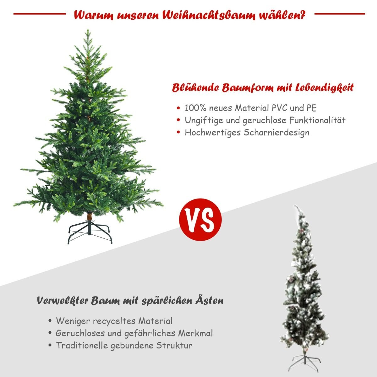 Padarykite šias Kalėdas ypatingas su mūsų dirbtiniu kalėdiniu medžiu – idealiu šventiniu akcentu! Pagamintas iš 100% naujo PVC ir PE, jis atrodo itin natūraliai ir yra ilgaamžis.