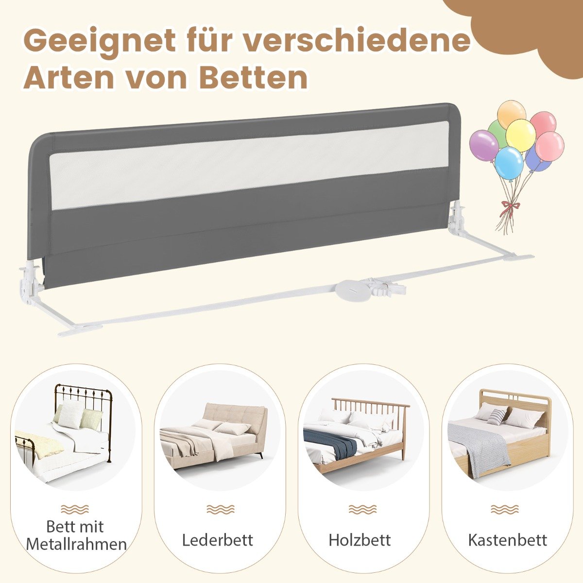 180 cm sulankstomas vaikiškas lovos apsaugas su diržu (Pilka)