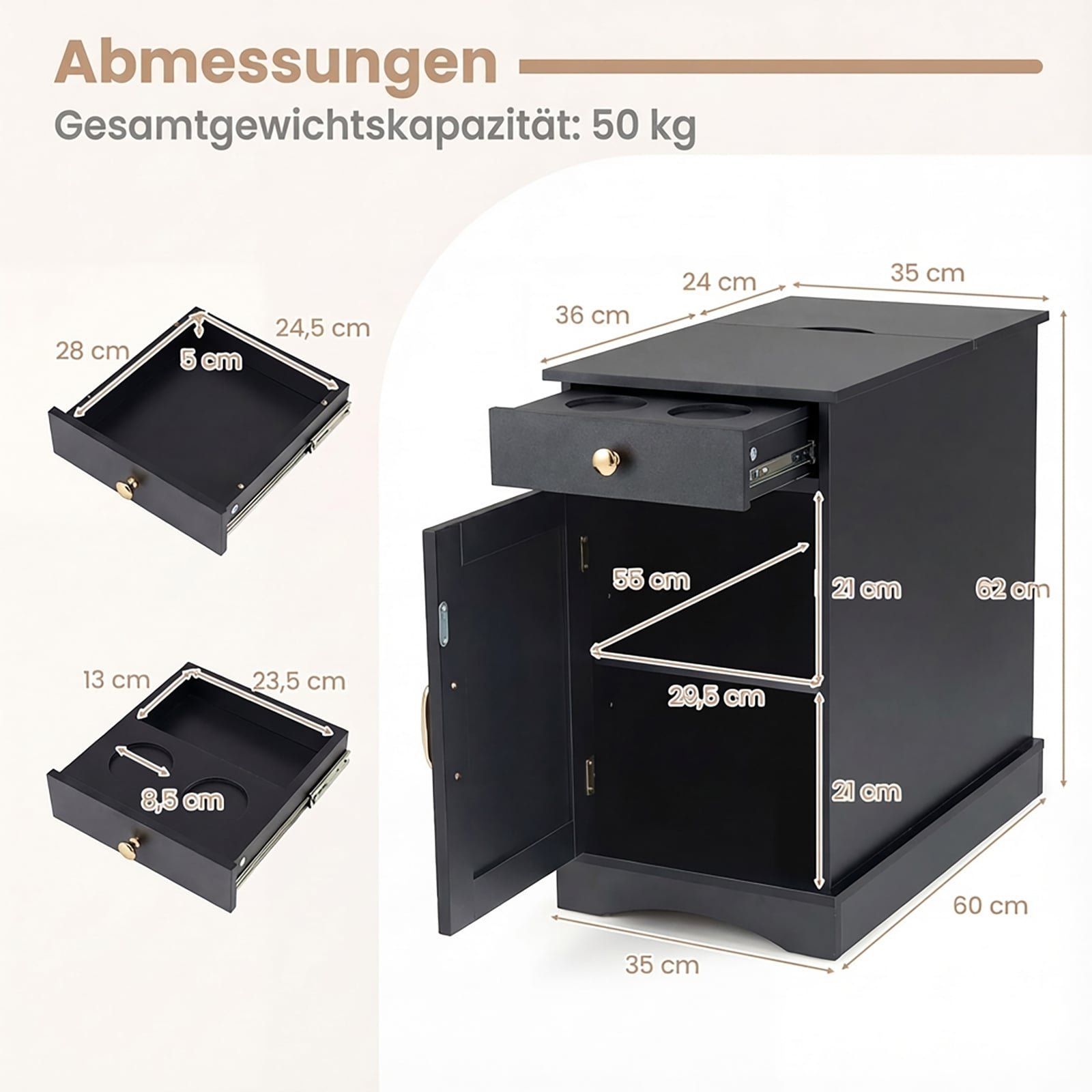 2 dalių naktiniai staliukai su įkrovimo stotele ir reguliuojamomis lentynomis (Juoda)