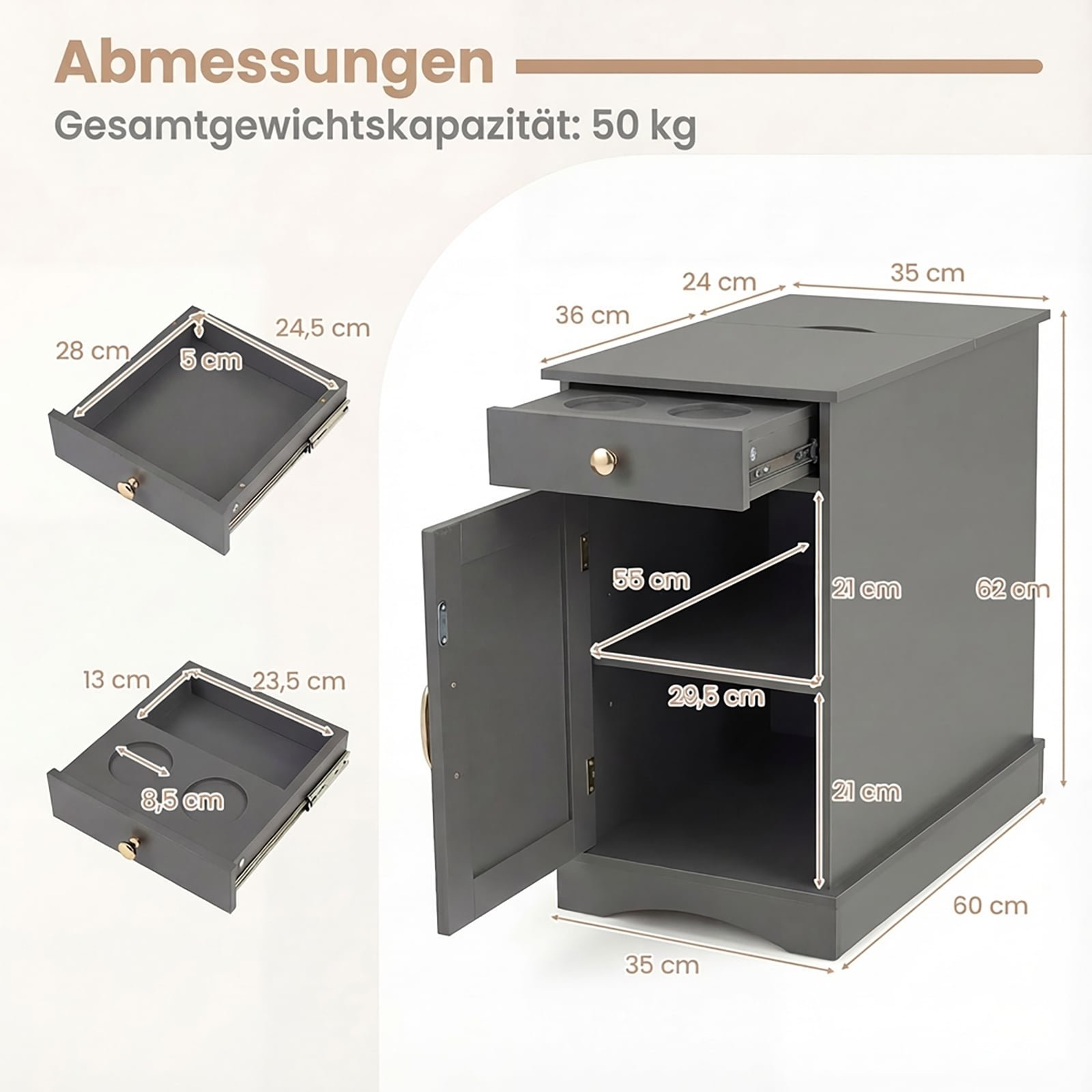 - Magnetiniai durelių uždarymo mechanizmai ir sklandžiai veikiantys stalčių bėgeliai palengvina naudojimą.