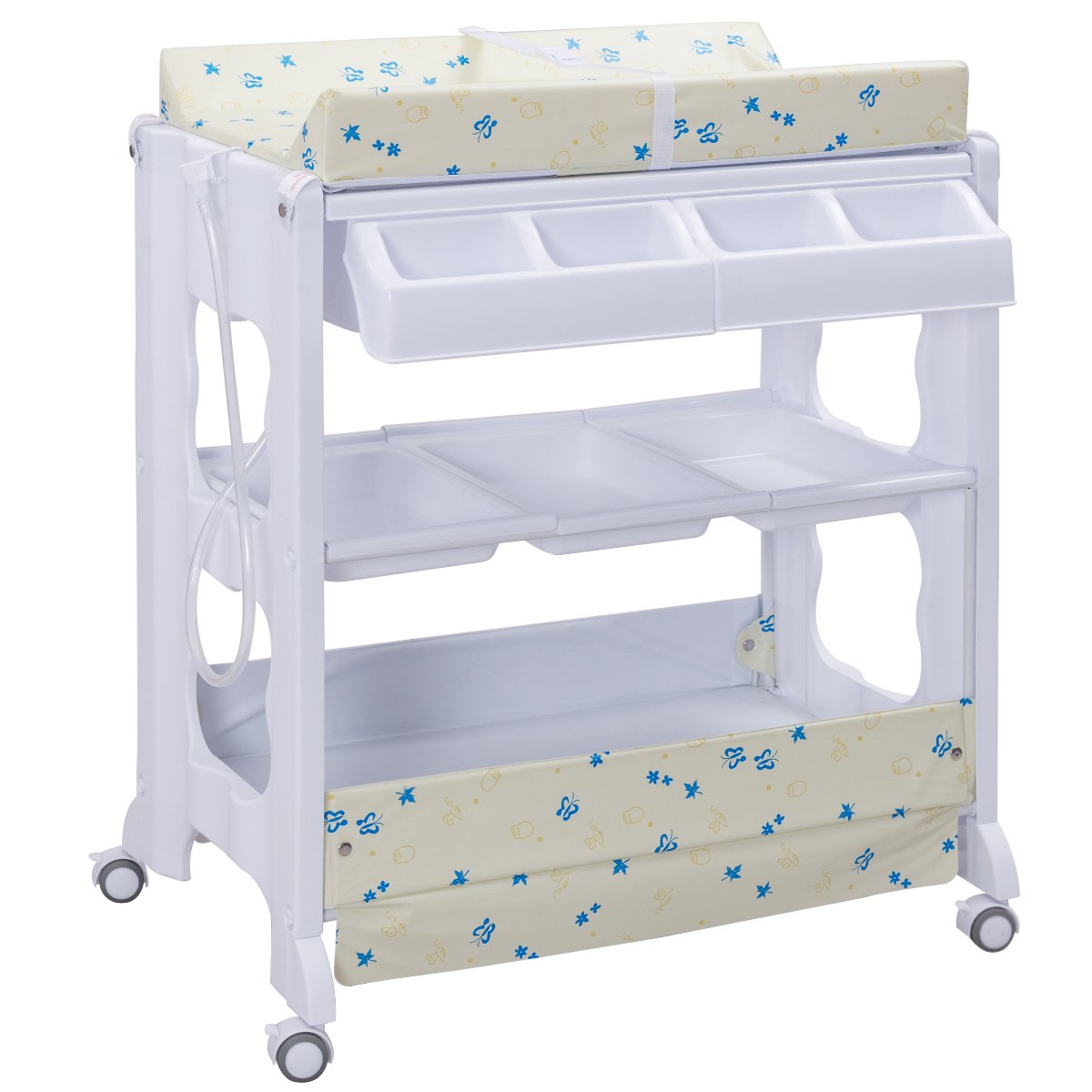 2-in-1 mobilus vystymo stalas su integruota vonele (Balta)