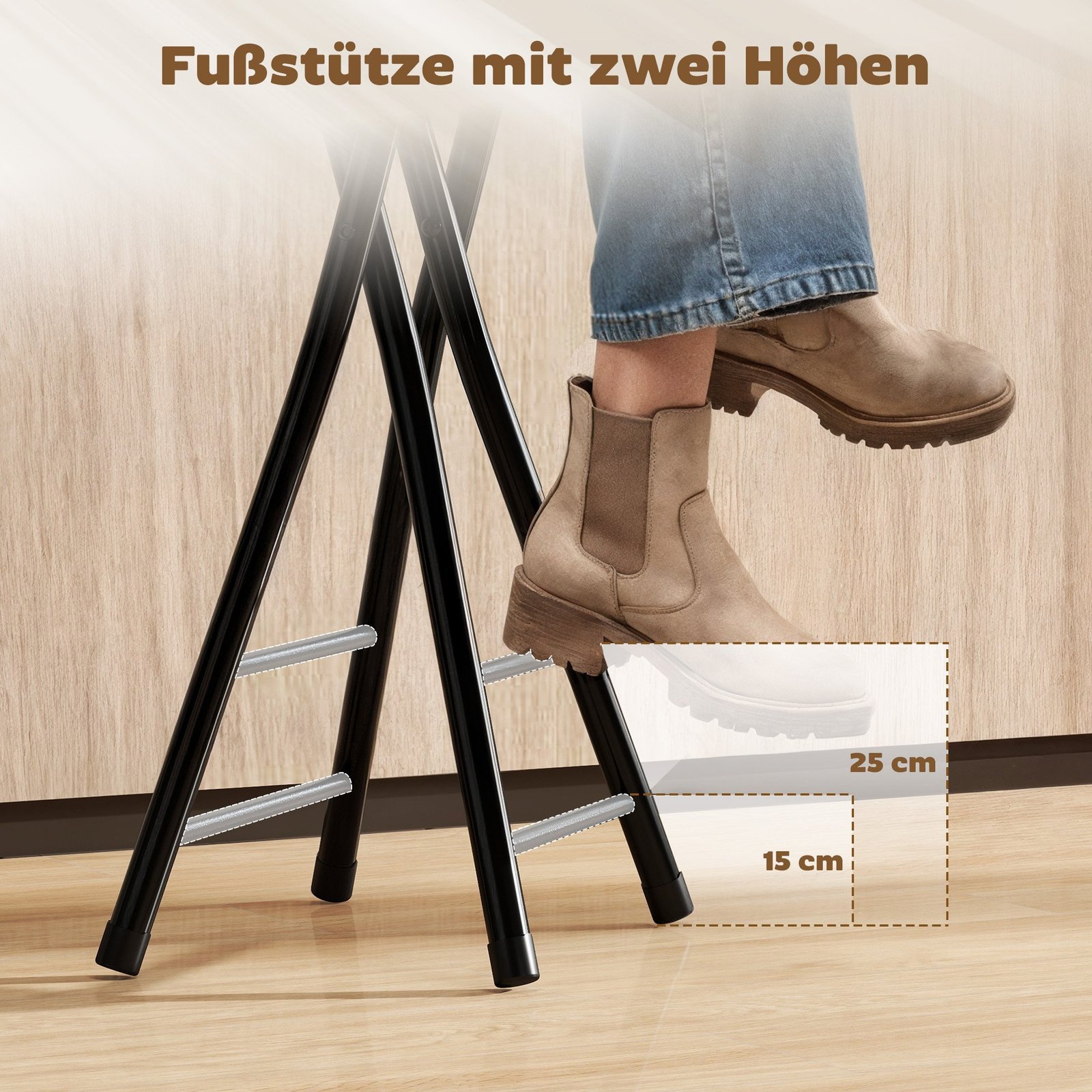 ✔ Turi dvigubas kojų atramas skirtinguose aukščiuose, kurios suteikia papildomo komforto įvairiems vartotojams