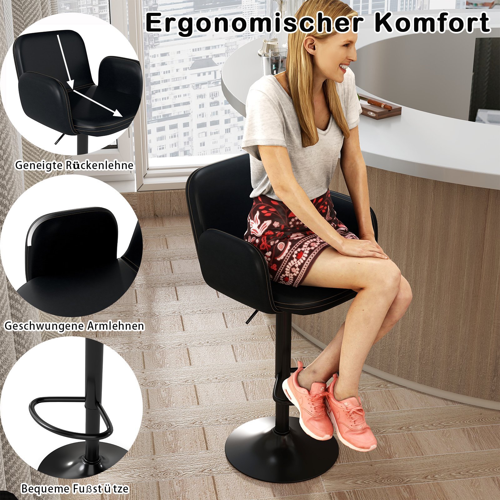 Atraskite naują sėdėjimo patirtį su šiuo 2 dalių pasukamų baro kėdžių rinkiniu. Dėl 360° pasukimo funkcijos ir reguliuojamo sėdynės aukščio šios baro kėdės puikiai prisitaiko prie įvairaus ūgio vartotojų ir skirtingų stalviršių aukščių, užtikrindamos maksimalų lankstumą. Paminkštinta sėdynė, aptraukta vandeniui atsparia dirbtine oda, užtikrina ilgalaikį komfortą ir lengvą priežiūrą. Ergonomiškos atramos rankoms, nugaros atrama ir pėdų atrama palaiko taisyklingą laikyseną ir leidžia atsipalaiduoti ilgesnį laiką.