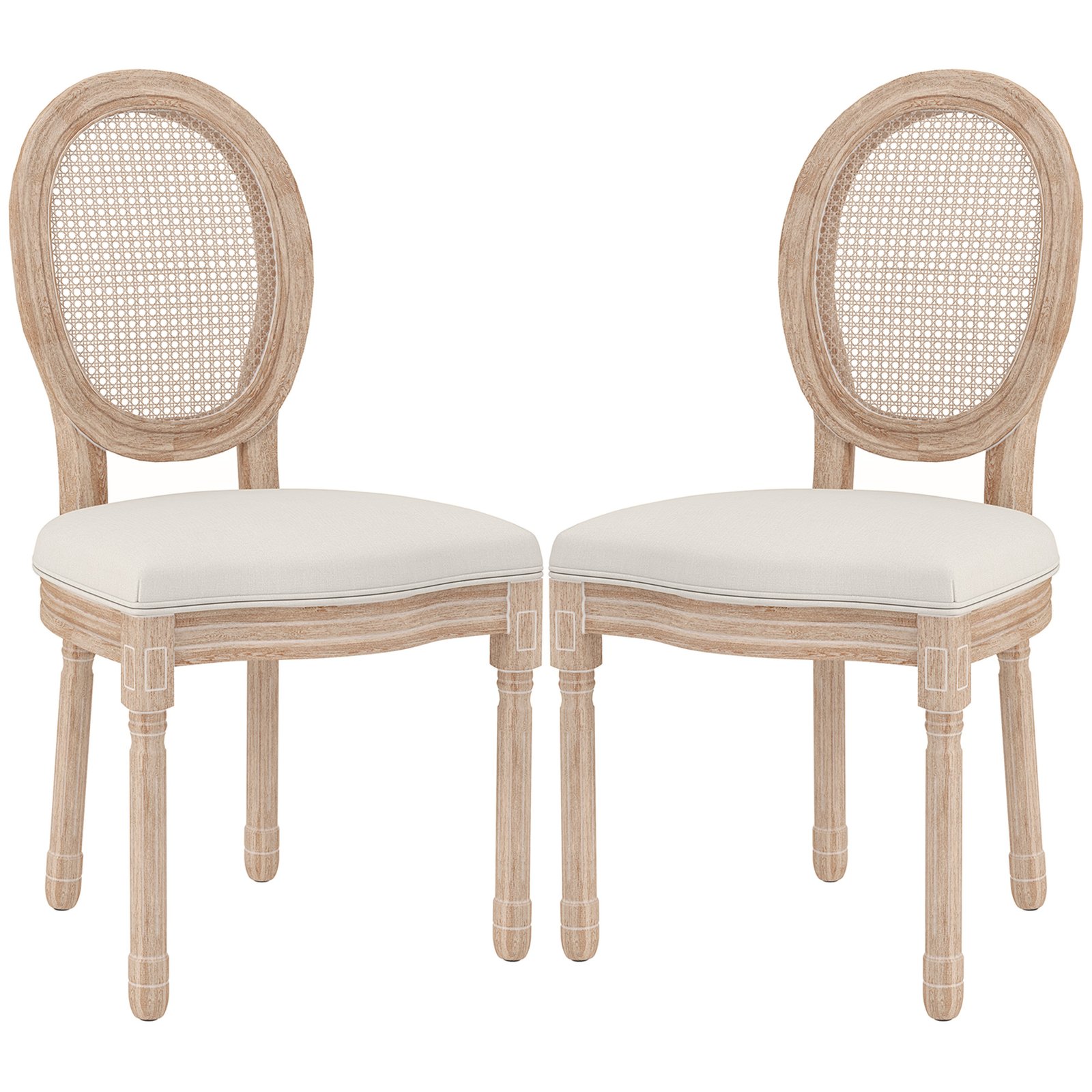 2 vnt. Vintažinio stiliaus valgomojo kėdžių komplektas su ratano nugarėle