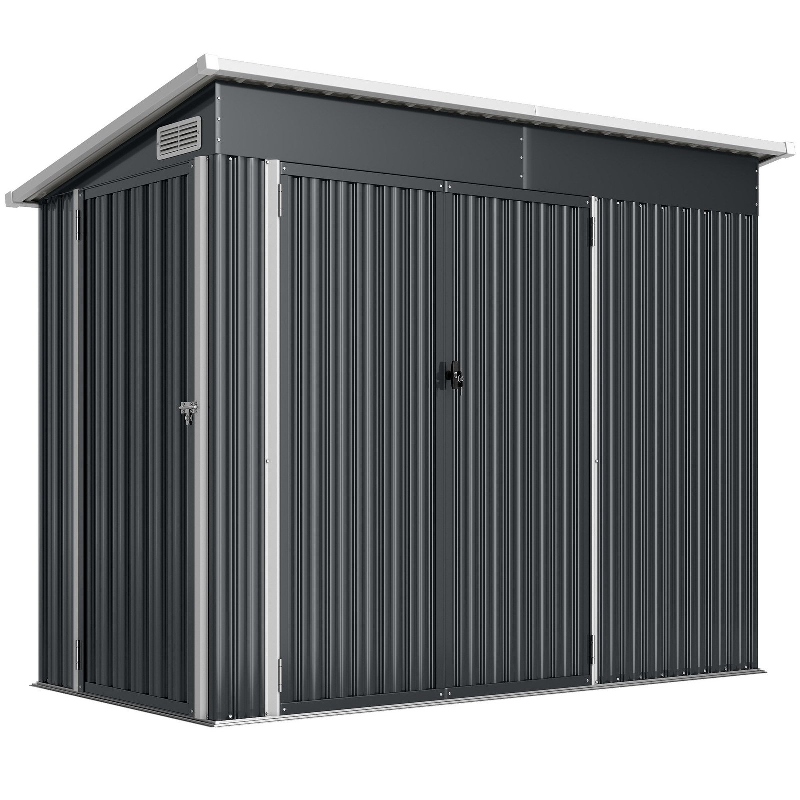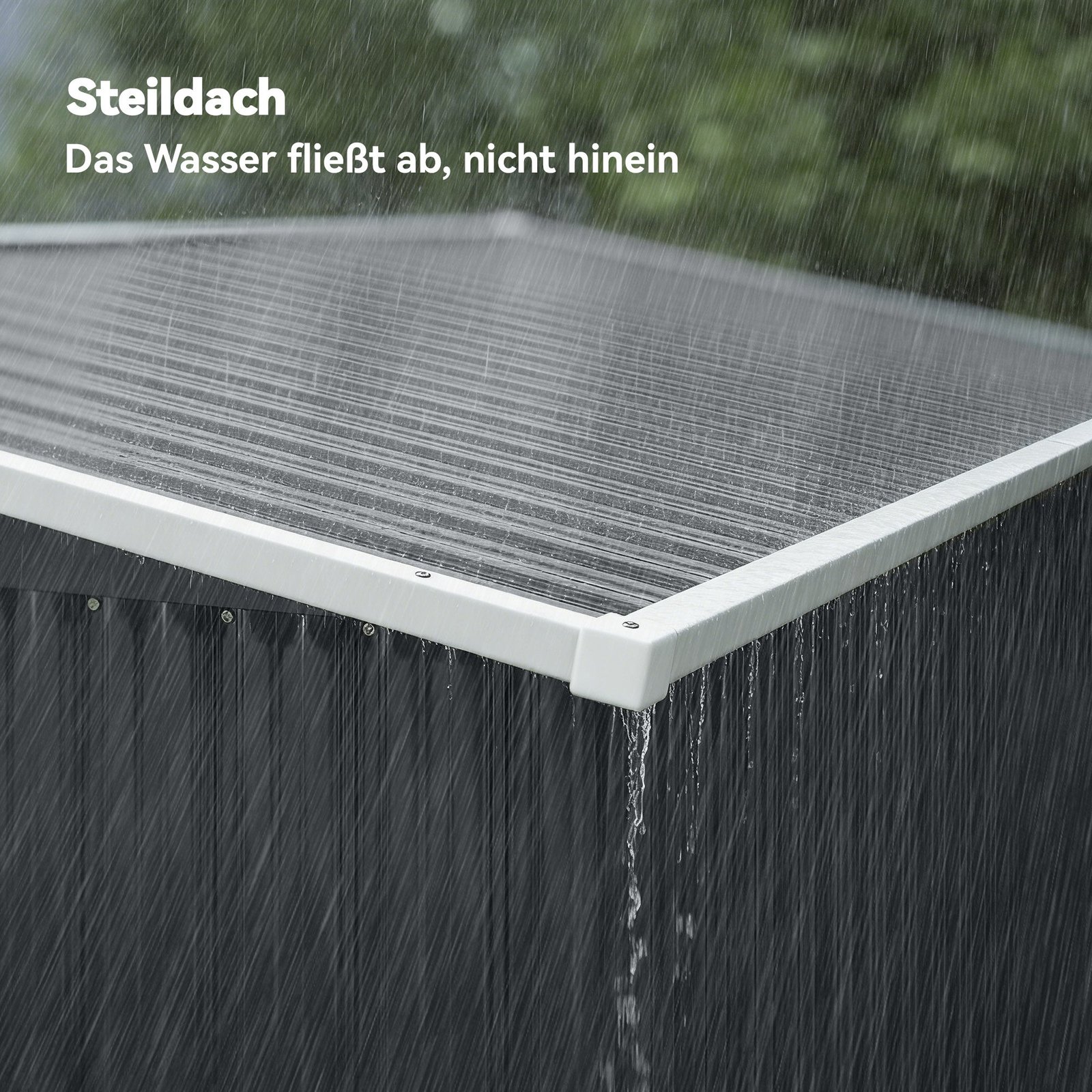 ✔ Metalinių įrankių namelio nuožulni stogo konstrukcija efektyviai nukreipia lietų ir sniego apkrovas