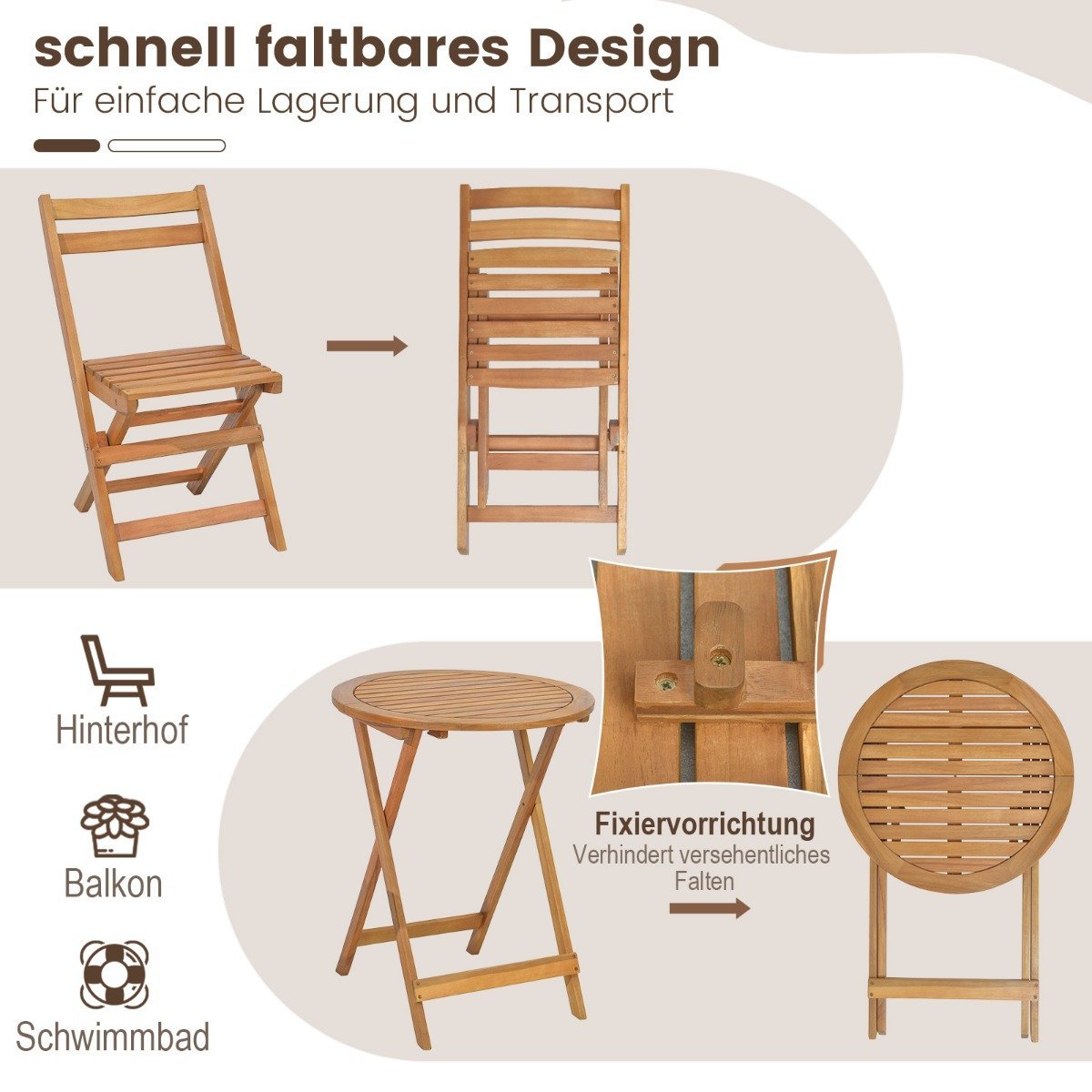 3 dalių akacijos medienos sulankstomas bistro komplektas su patogia atlenkiama konstrukcija (Natūrali)
