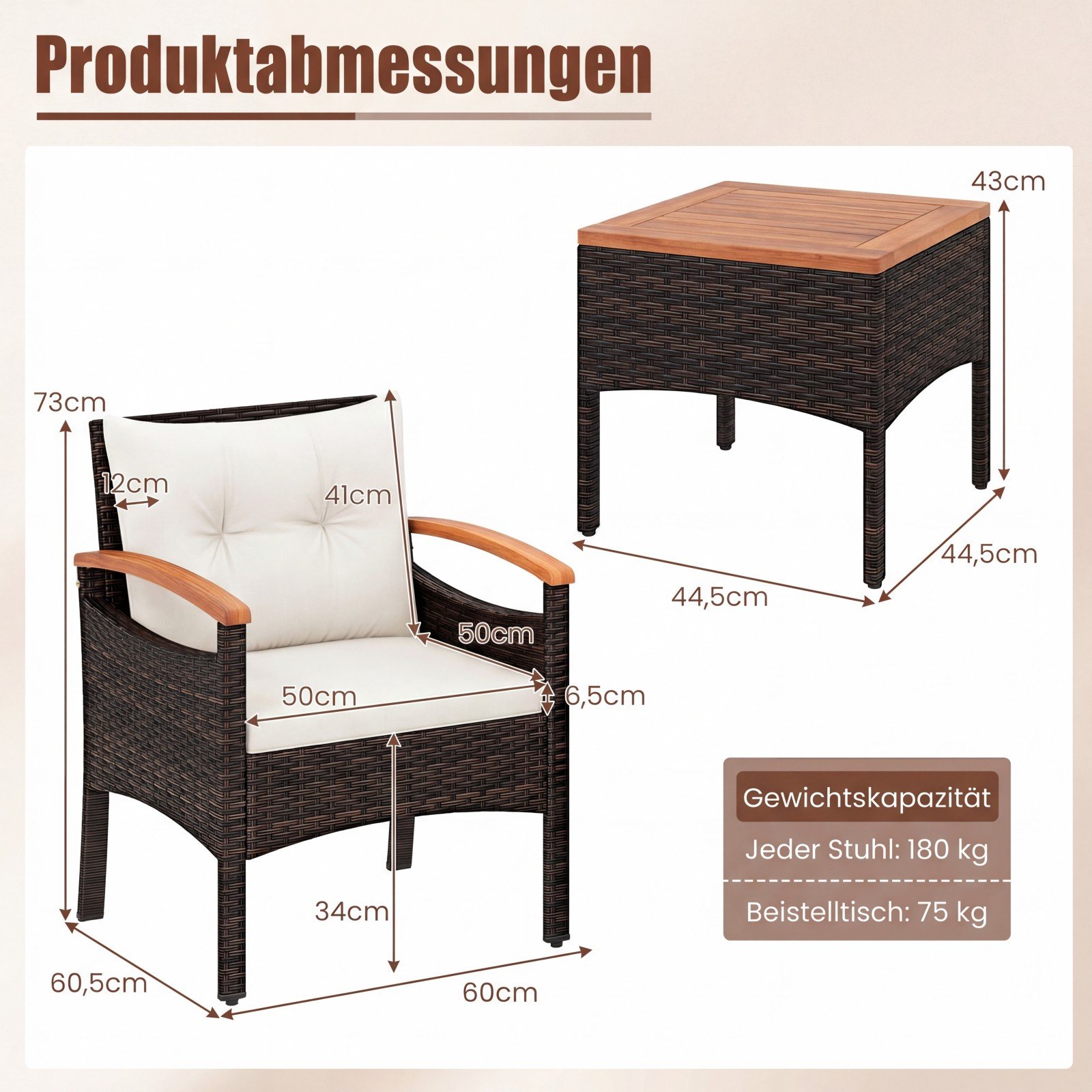 - Medžiagos: Akacijos mediena, PE ratanas, metalas, putplastis, poliesteris