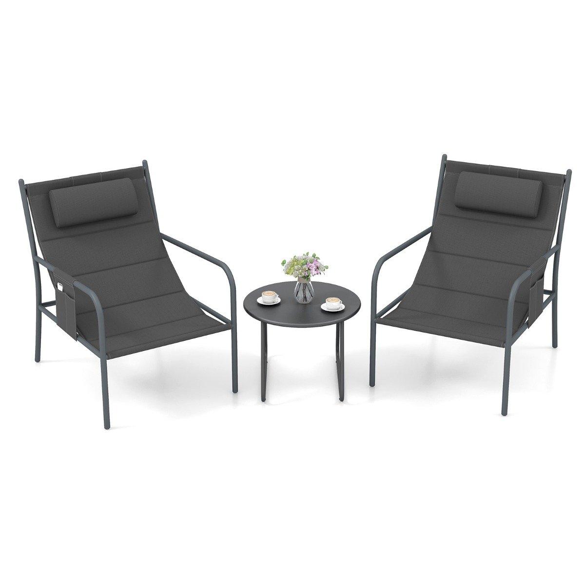 Patirkite nepakartojamą komfortą su šiuo 3 dalių ergonomišku lauko baldų komplektu. Kėdės sukurtos atsižvelgiant į Jūsų patogumą – jos pasižymi orui pralaidžiu audiniu ir užtikrina atramą visoms kūno dalims.