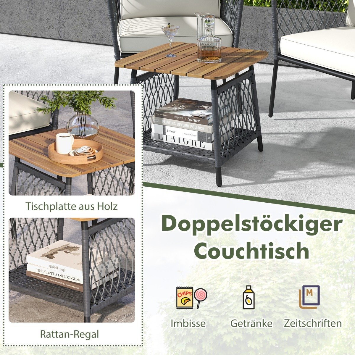 - Aukštos kokybės PE rotango apdaila, atspari blukimui ir ilgaamžė.