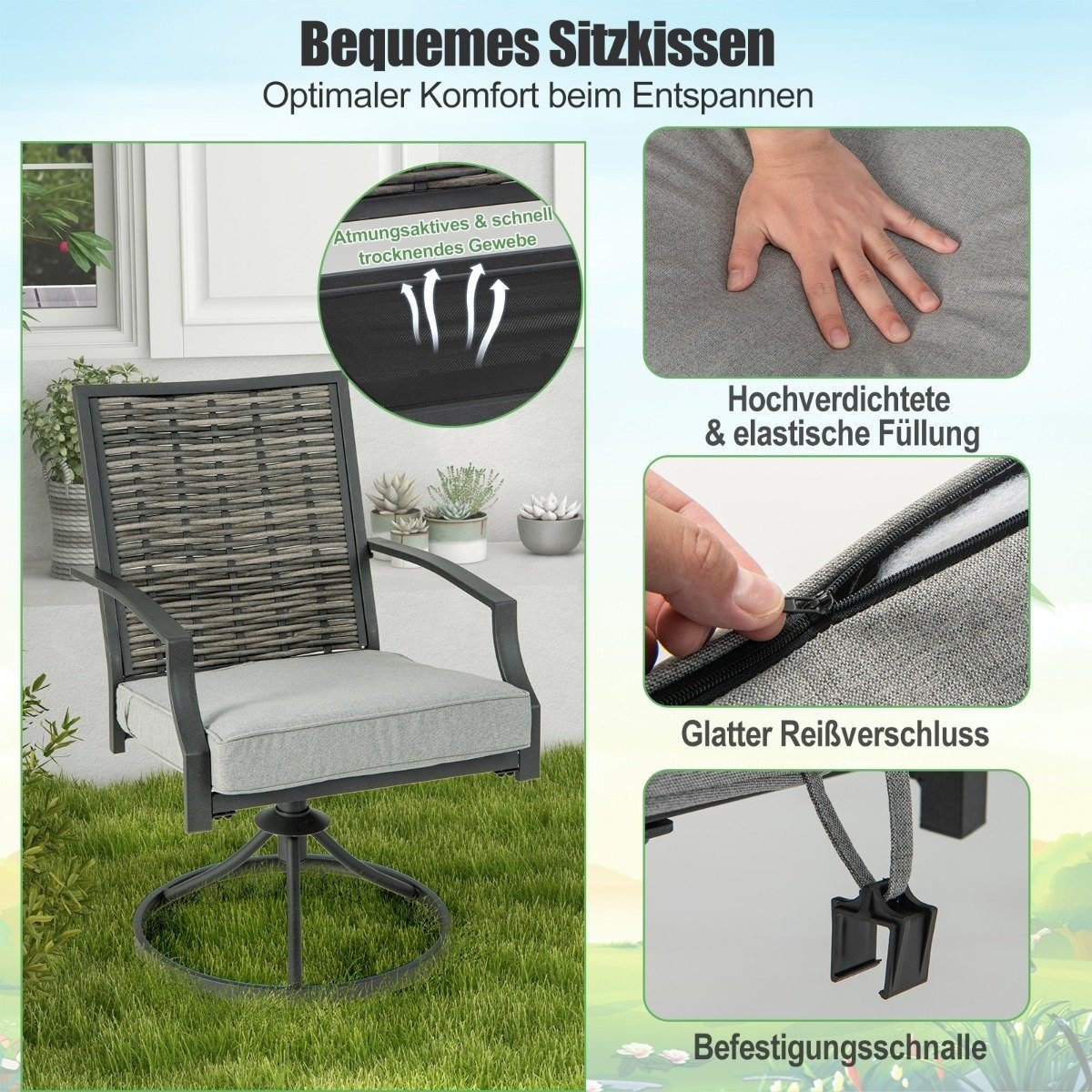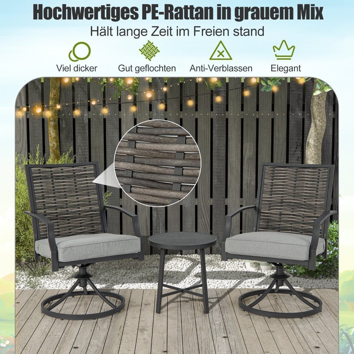 - Aukštos kokybės PE rotangas ir tvirtas metalinis rėmas garantuoja ilgaamžiškumą.