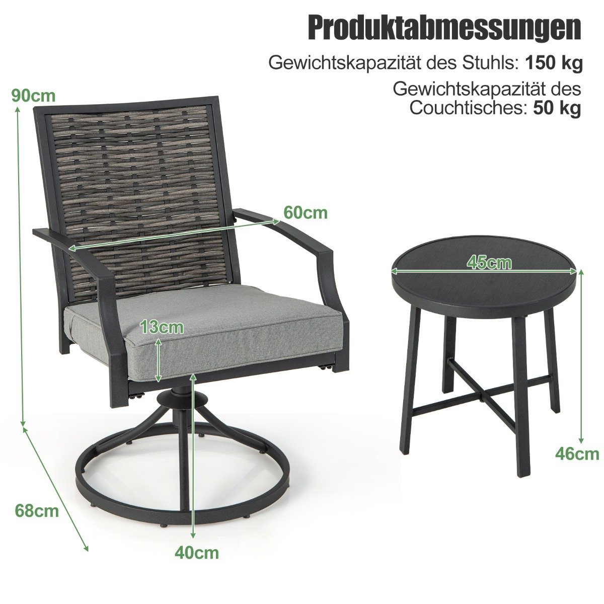 - Staliuko matmenys: 45 x 46 cm (Skersmuo x Aukštis)