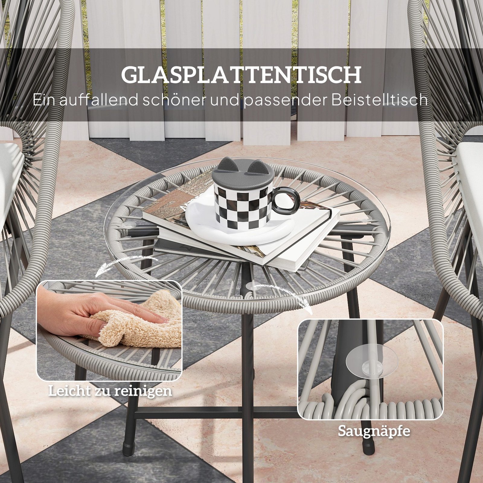 Medžiaga: Plienas, PE rotangas, Poliesteris, Grūdintas stiklas