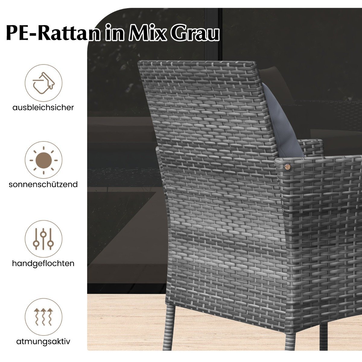• Aukštos kokybės PE rotango pynimas, atsparus UV spinduliams ir blukimui.