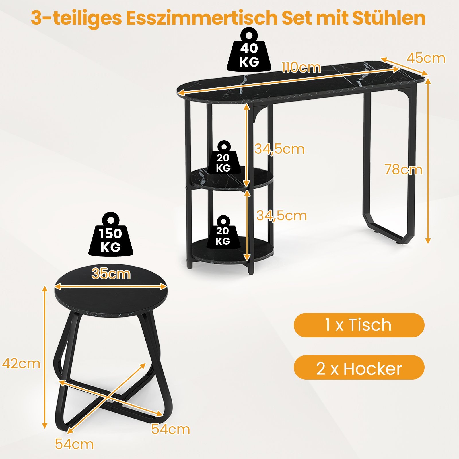 - Stalo matmenys: 110 x 45 x 78 cm (I x P x A)