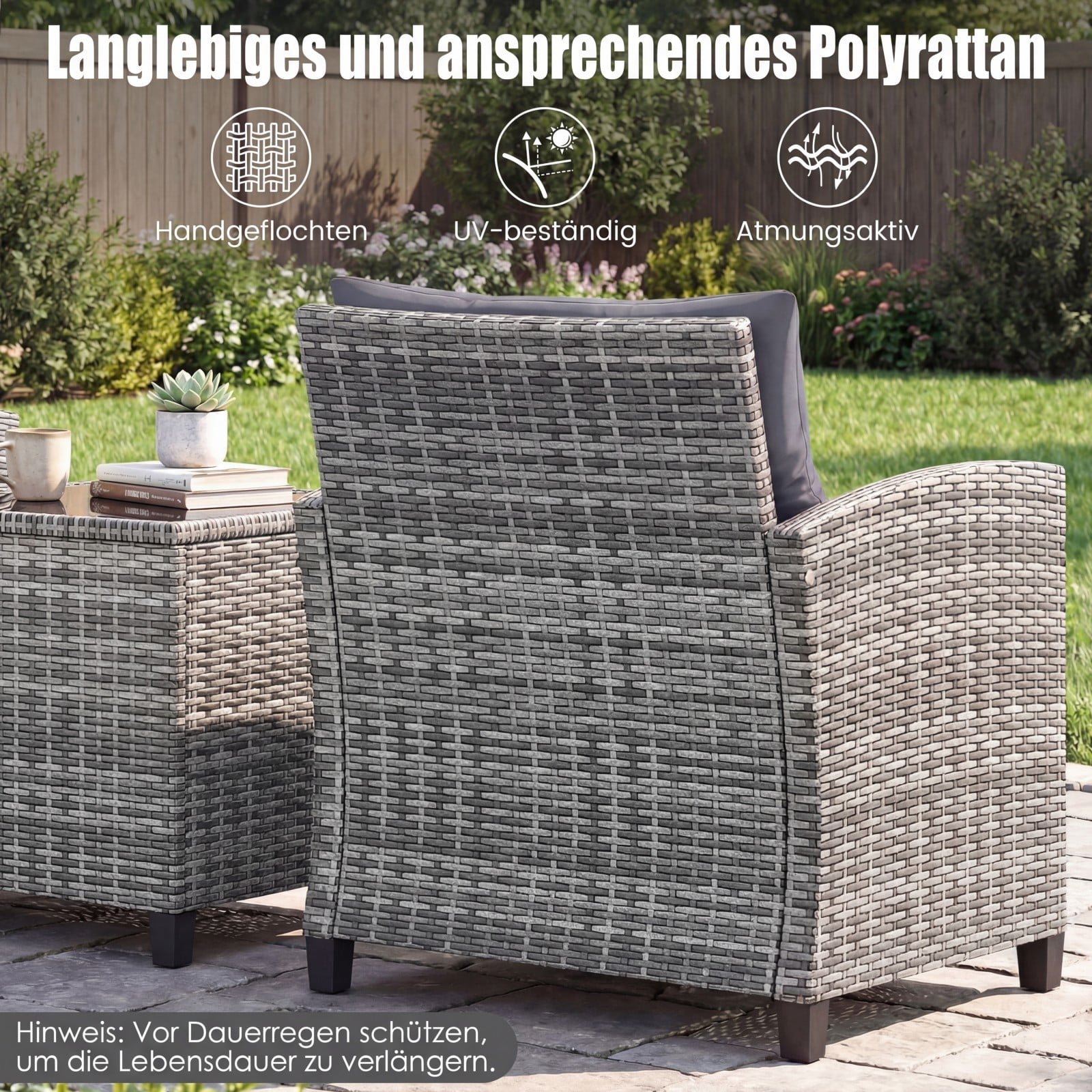 3 dalių ratano lauko baldų komplektas su 2 kėdėmis ir stalu (Pilka)