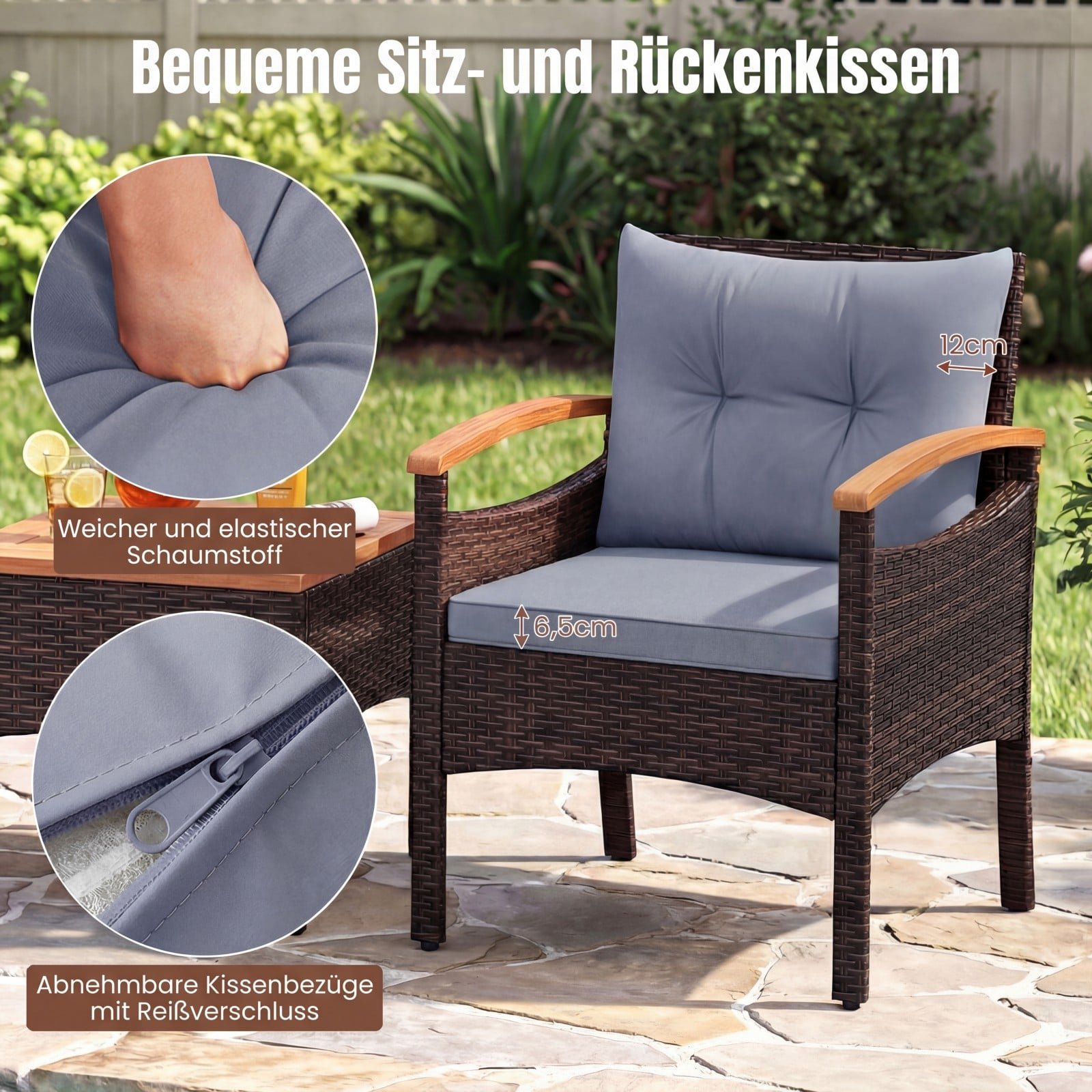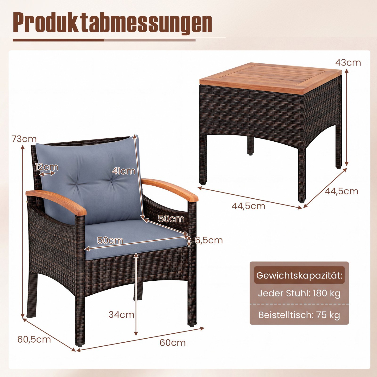 Ratano lauko baldų komplektas su krėslais ir šoniniu staliuku 3 dalių (Pilka)