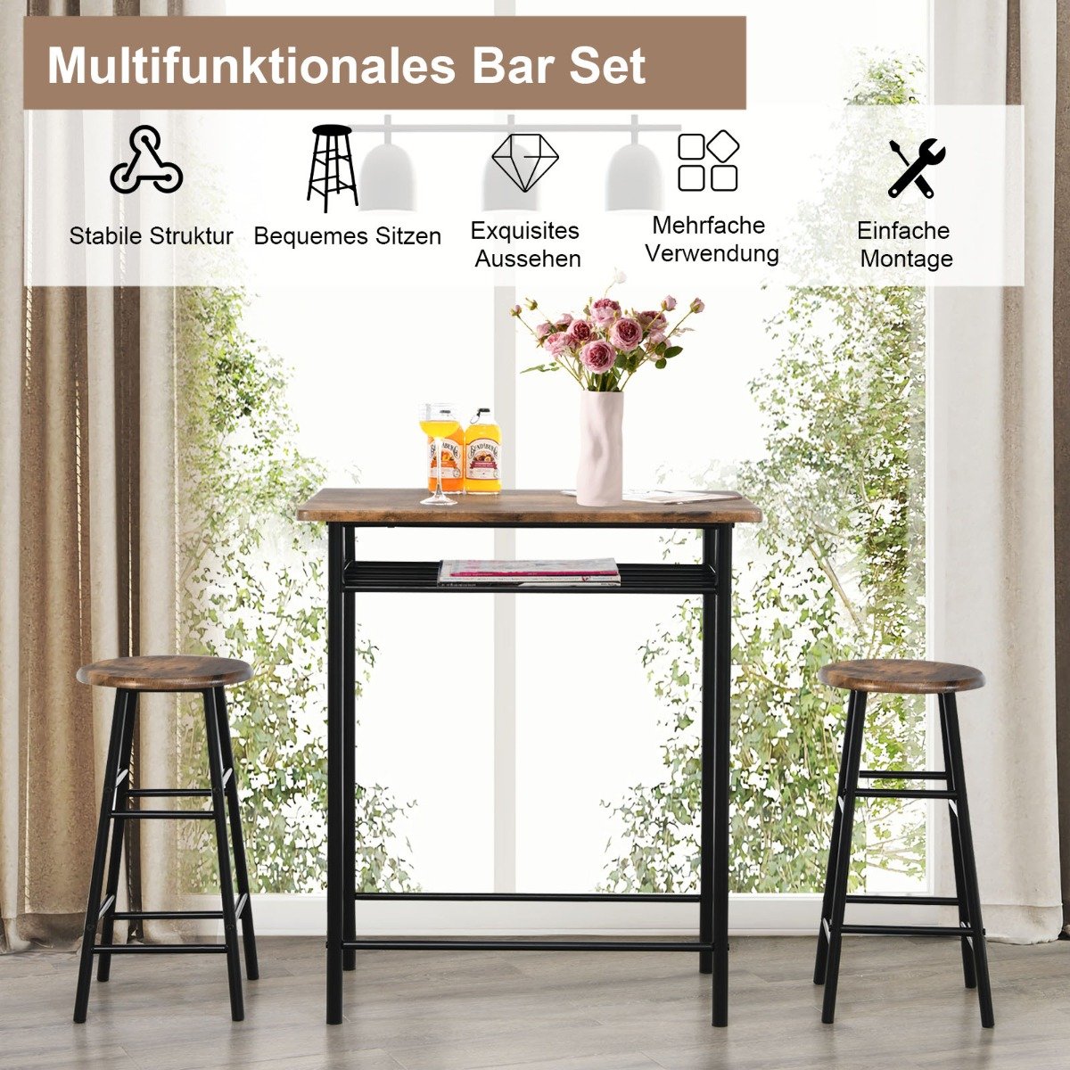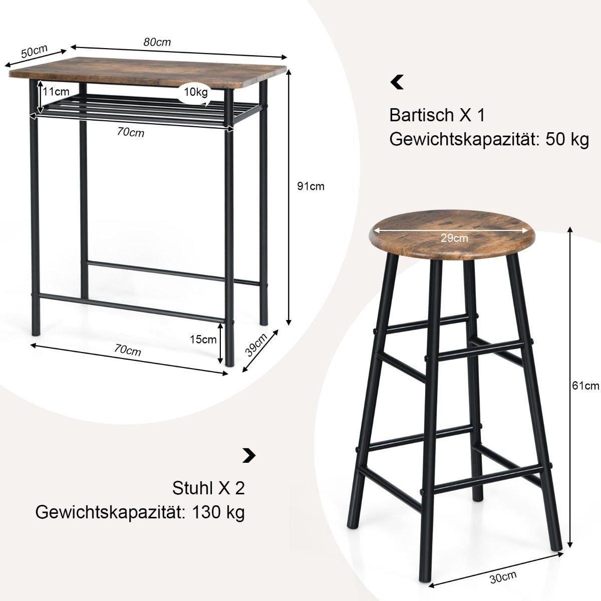 3 dalių virtuvės baldų komplektas su stalu ir dviem taburetėm (Kavos)
