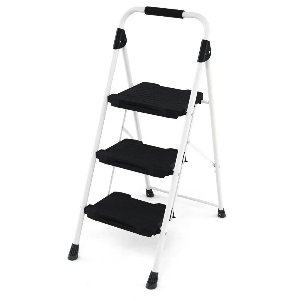3 laiptelių sulankstomos kopėčios su paminkštintu turėklu ir neslystančiais laipteliais (Juoda)