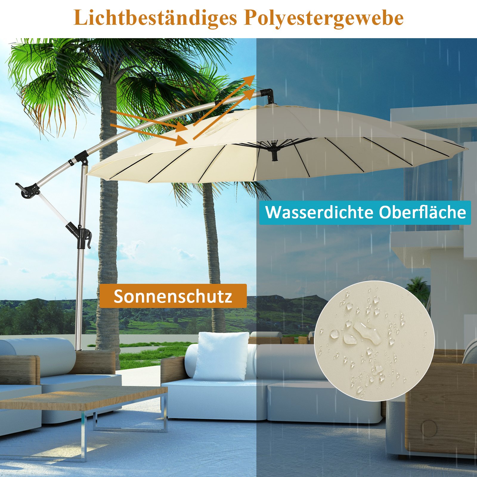 3 metrų skėtis nuo saulės su reguliuojamu kampu ir aliuminio rėmu (Smėlio)