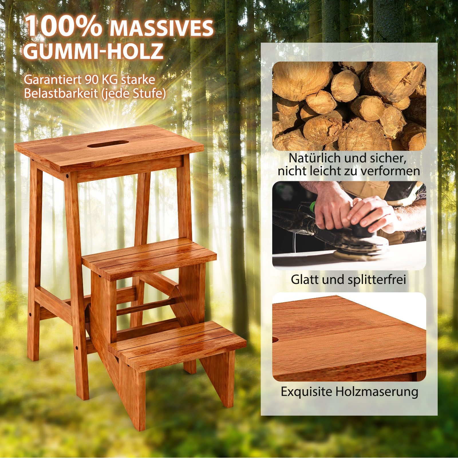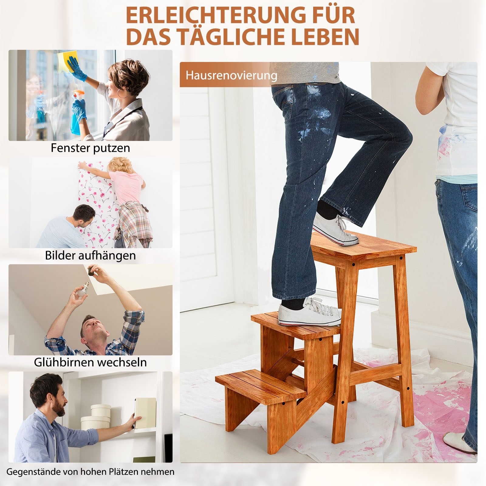 3 pakopų kopėtėlės su kaučiukmedžio rankena (Ruda)