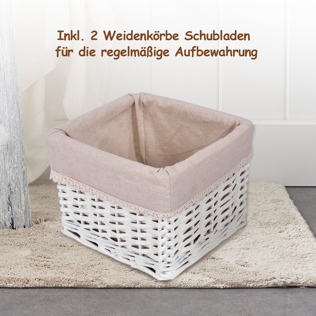 - Daug vietos daiktams laikyti: 1 stalčius ir 2 išimami pinti krepšeliai.