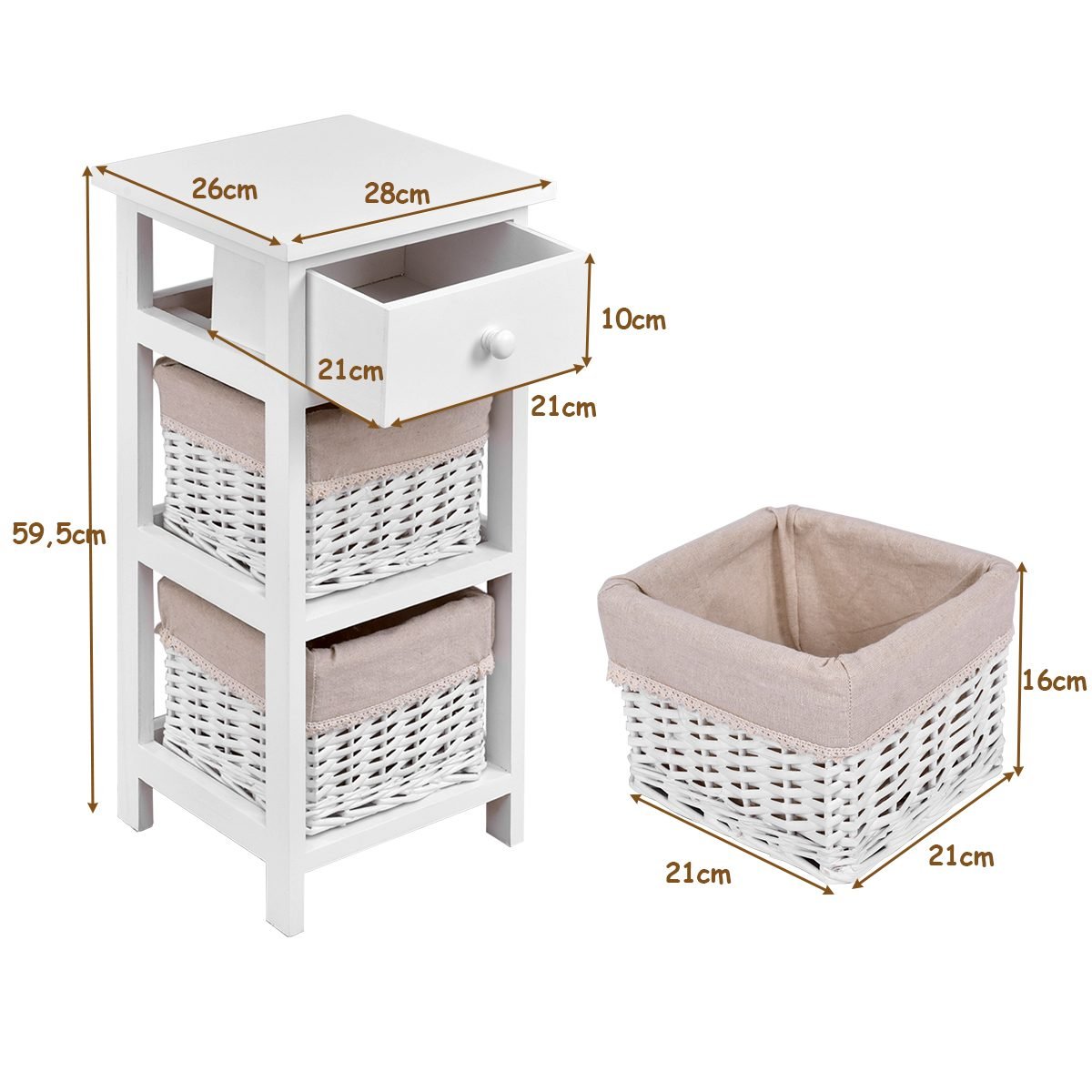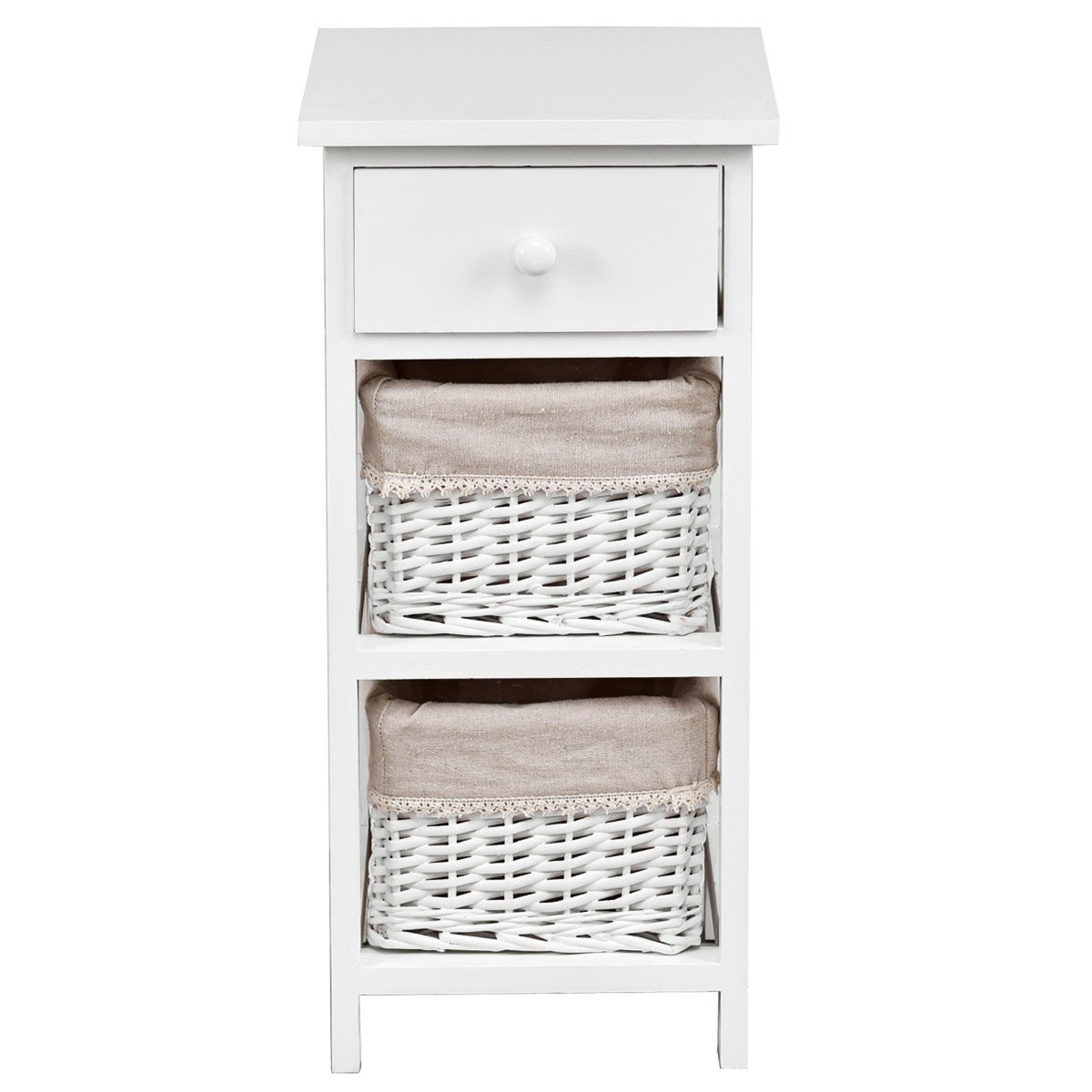 3 pakopų naktinis staliukas su stalčiumi ir dviem krepšeliais (Balta)