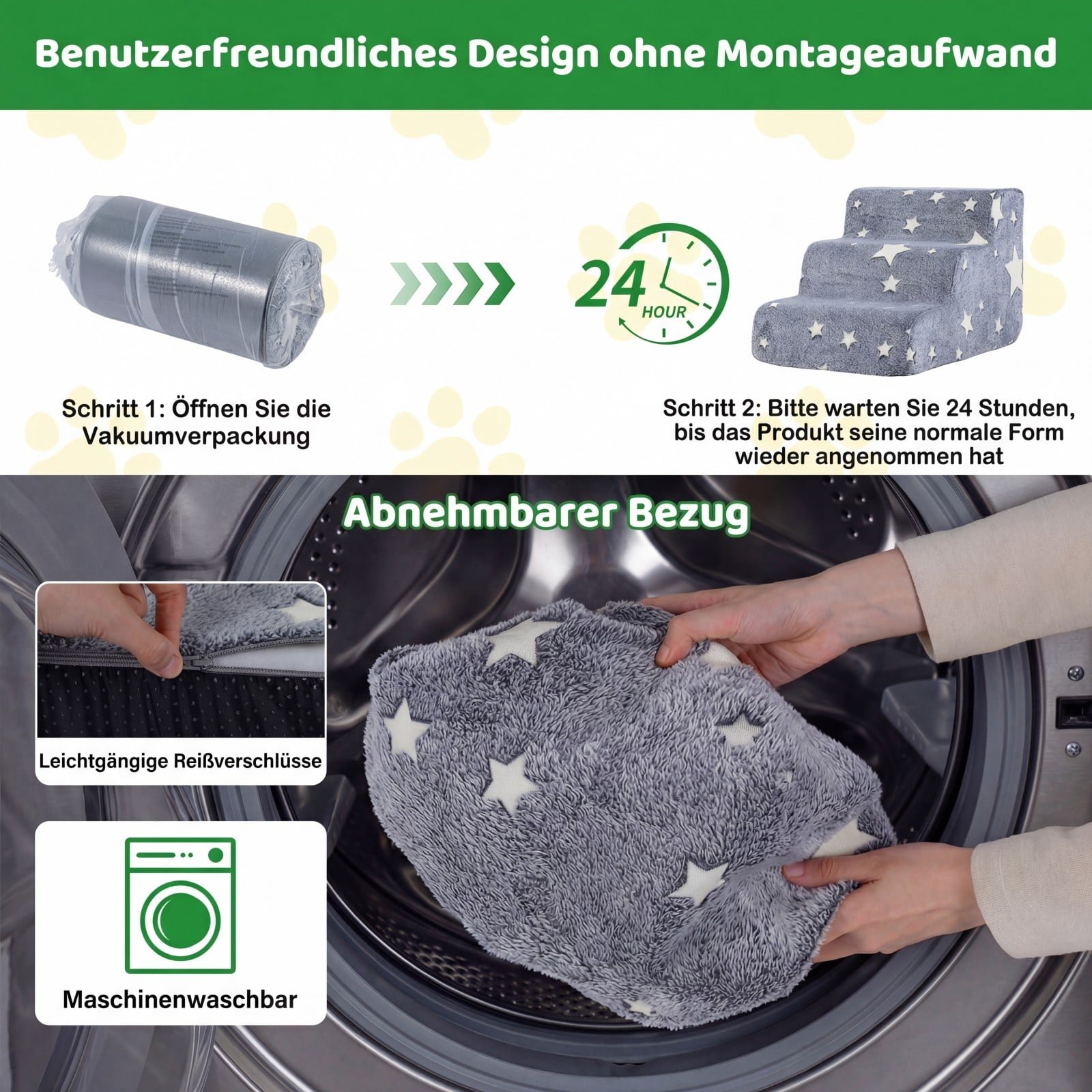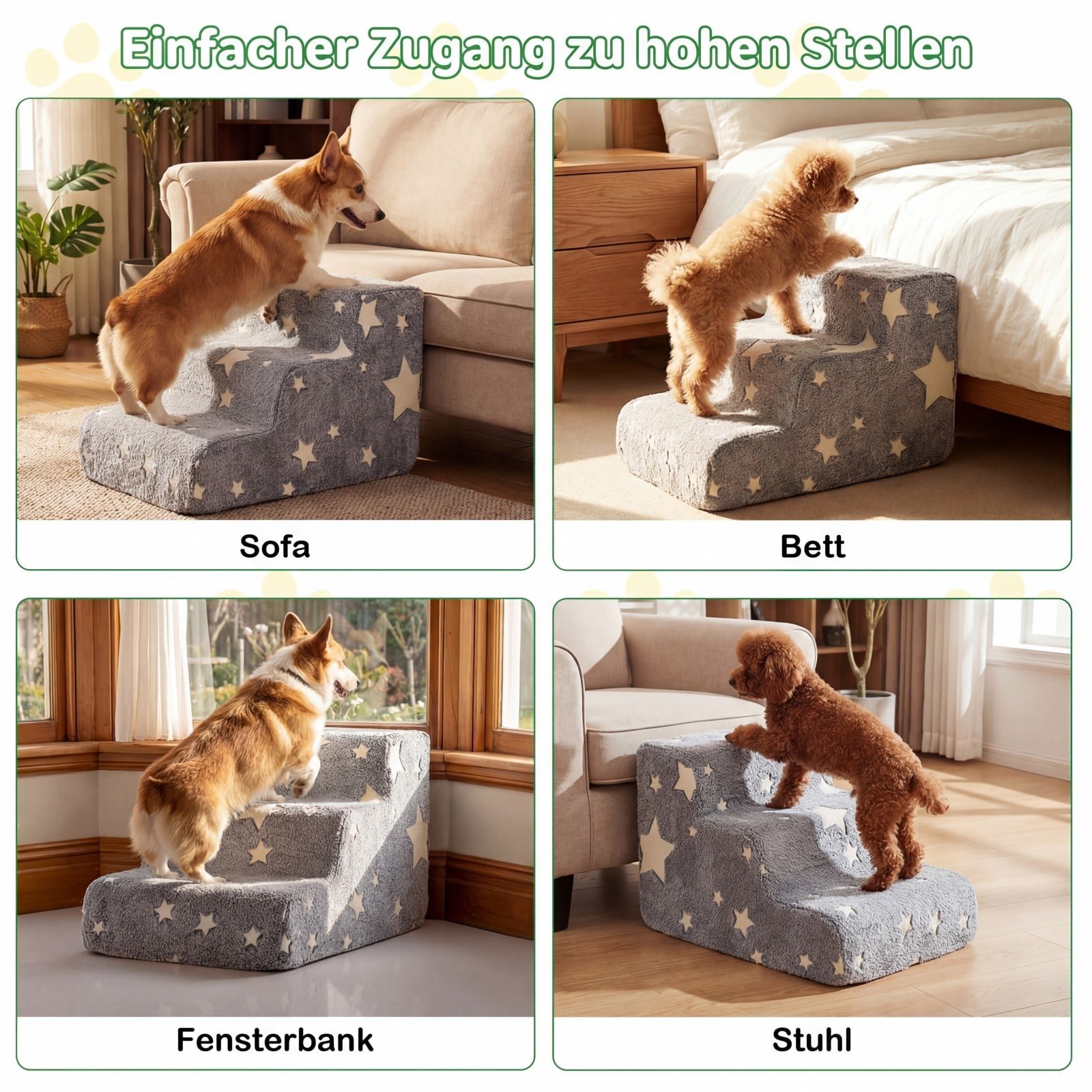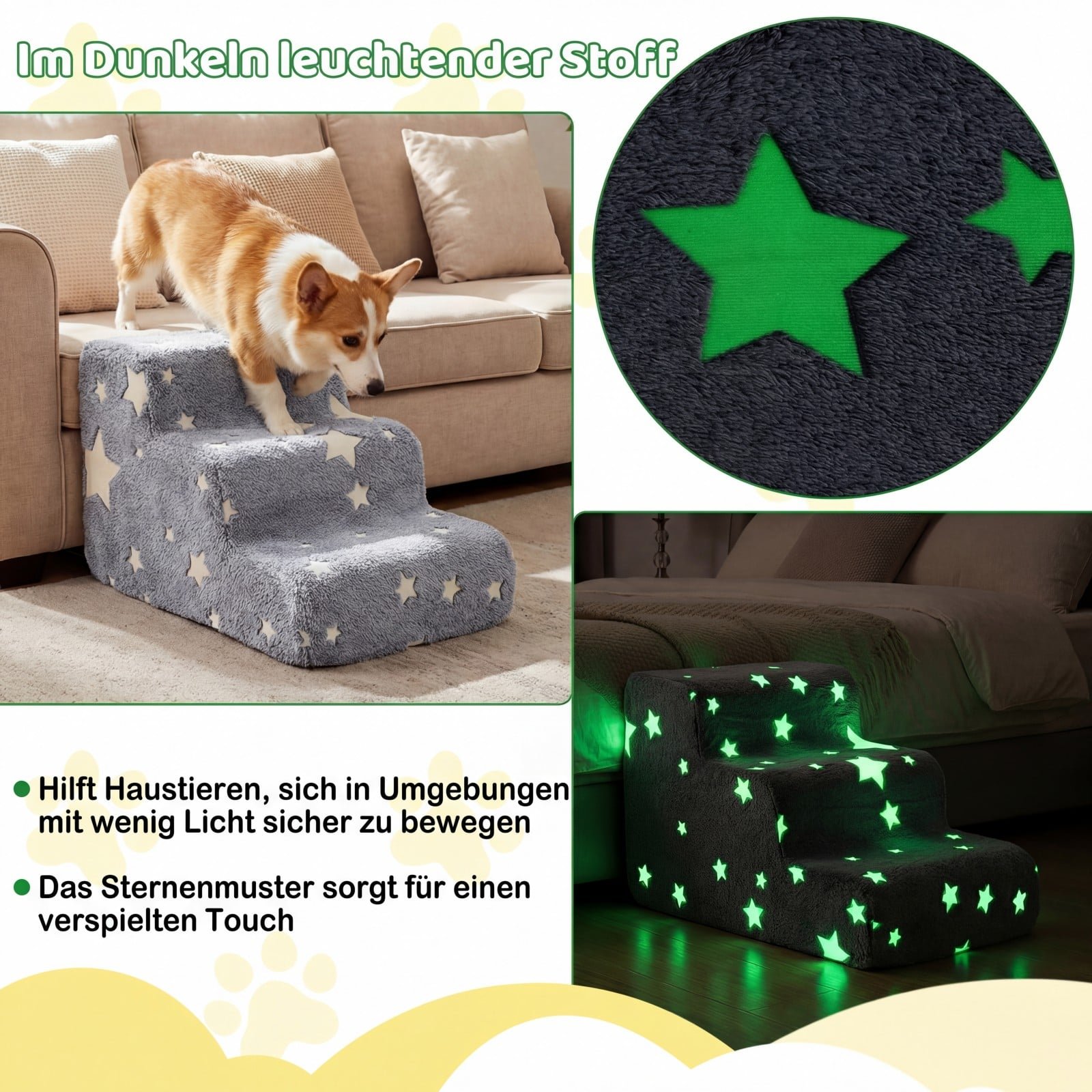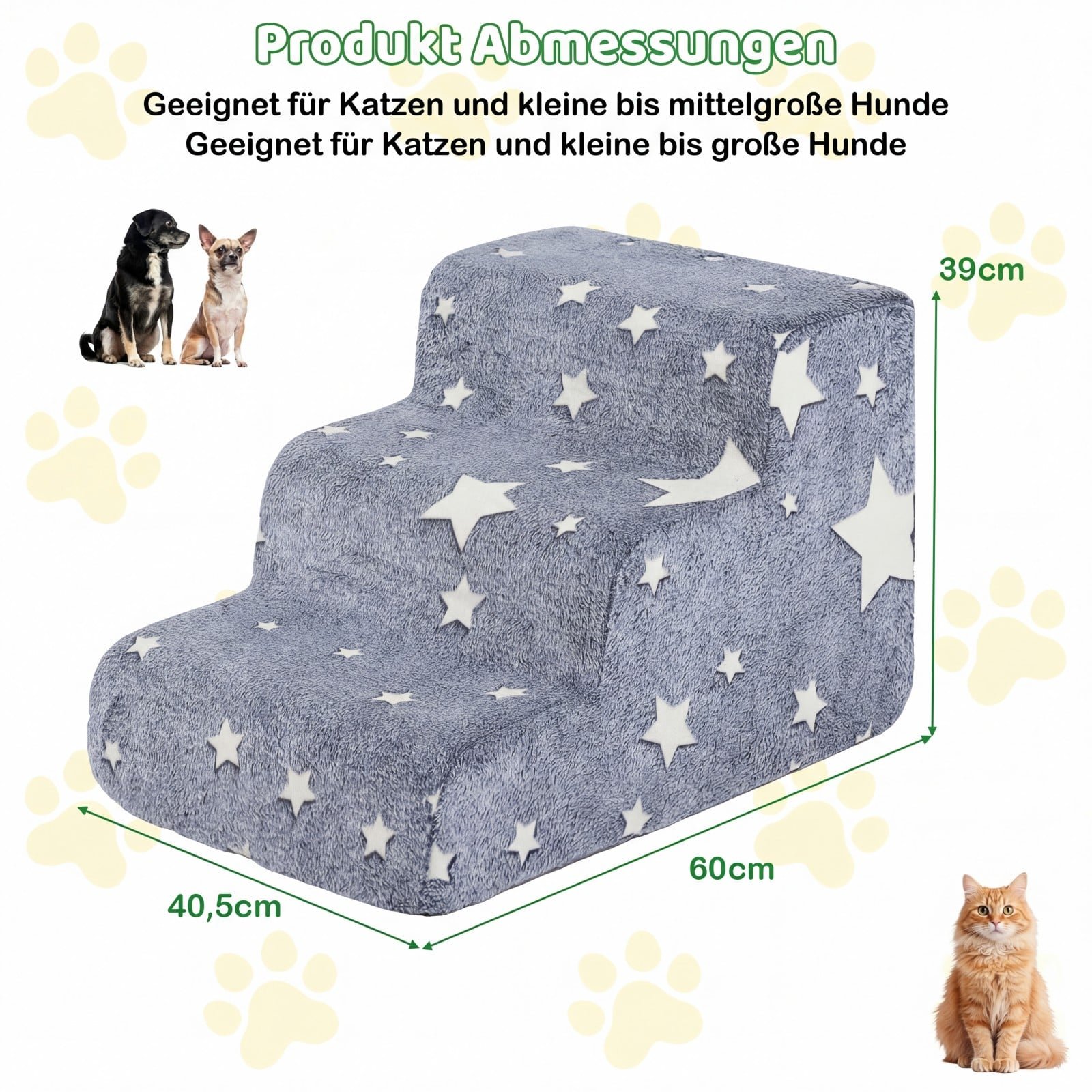 Suteikite savo keturkojui draugui lengvą ir saugų pakilimą su šiais 3 pakopų putų laiptais. Pagaminti iš didelio tankio putų, šie laiptai užtikrina stabilų palaikymą ir ilgalaikį formos išlaikymą, o švelnus nuolydis sumažina sąnarių apkrovą. Minkštas flanelinis užvalkalas su šviečiančiais elementais ne tik suteikia jaukumo, bet ir padeda jūsų augintiniui orientuotis tamsoje.