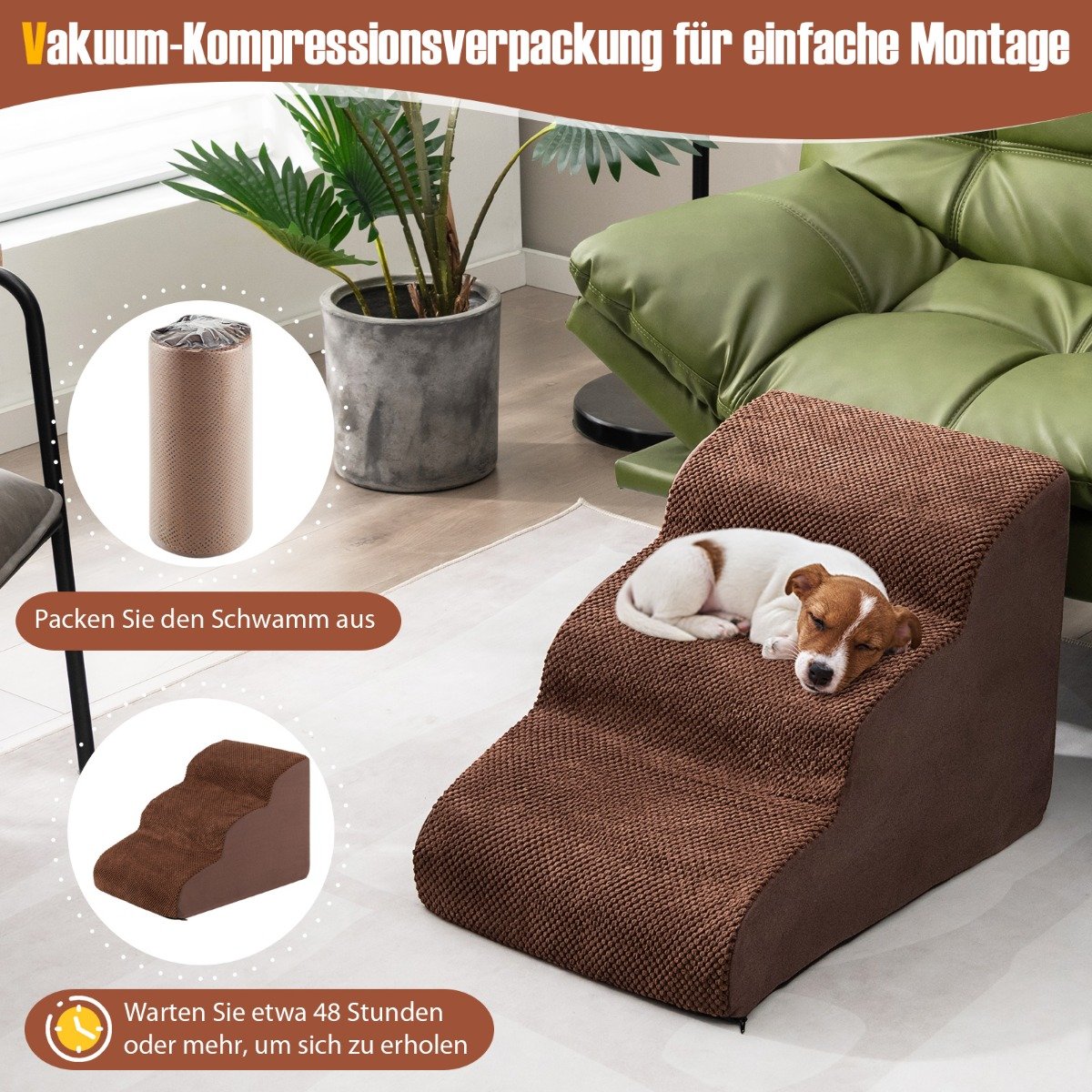 3 pakopų šunų rampos su minkštu čiužiniu (Kavos)