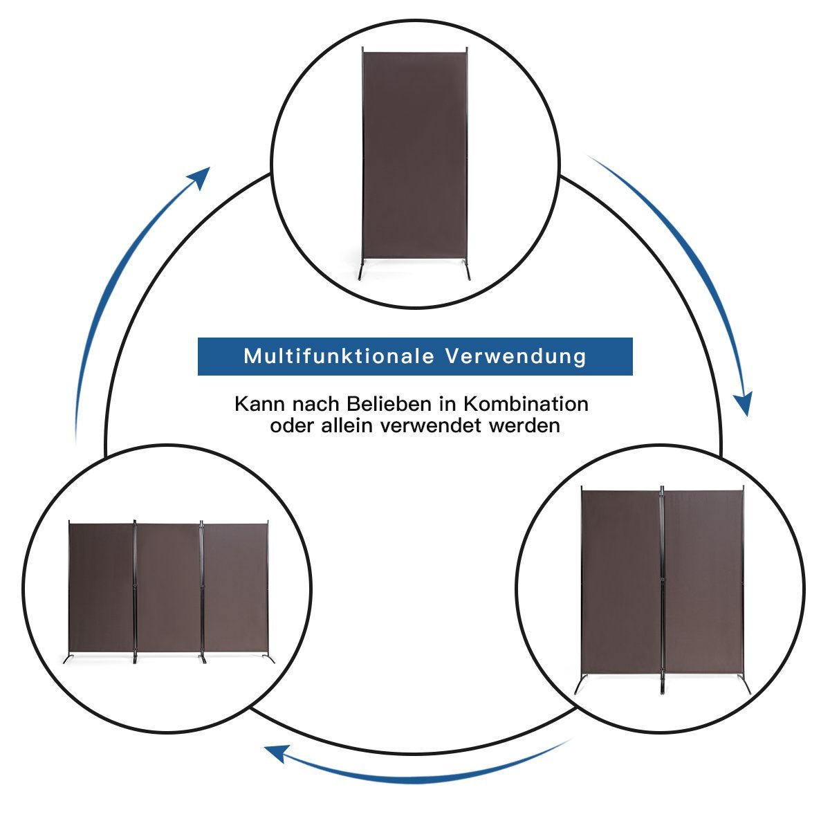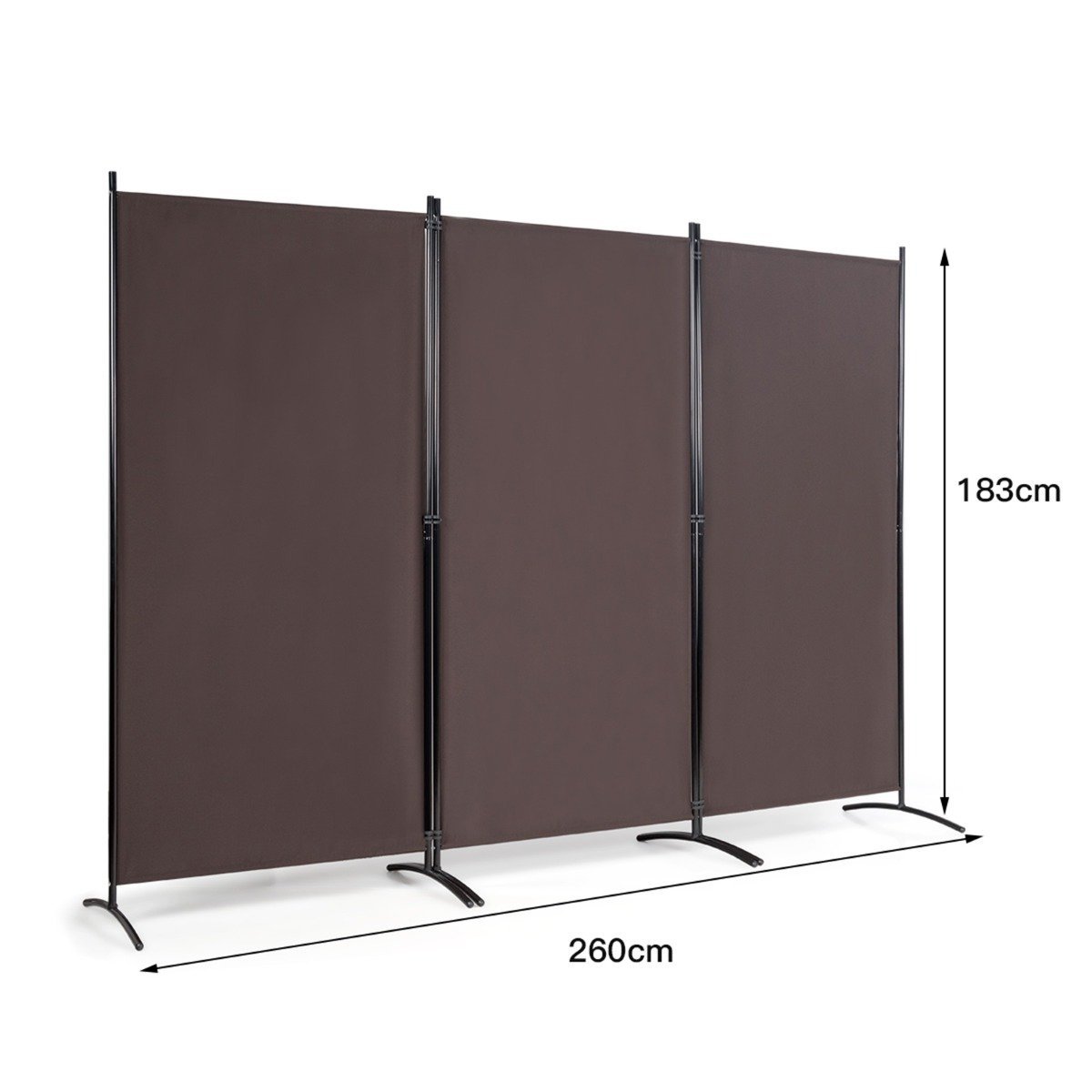 3 panelių pertvara su tvirtais vyriais ir plienine baze (Kavos)
