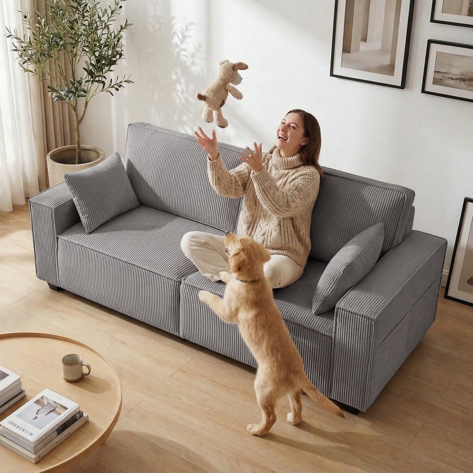 ✔ Jaukus kordo audinys suteikia jūsų svetainei šilumos ir ilgaamžiškumo, puikiai tinka jaukiai sofai.