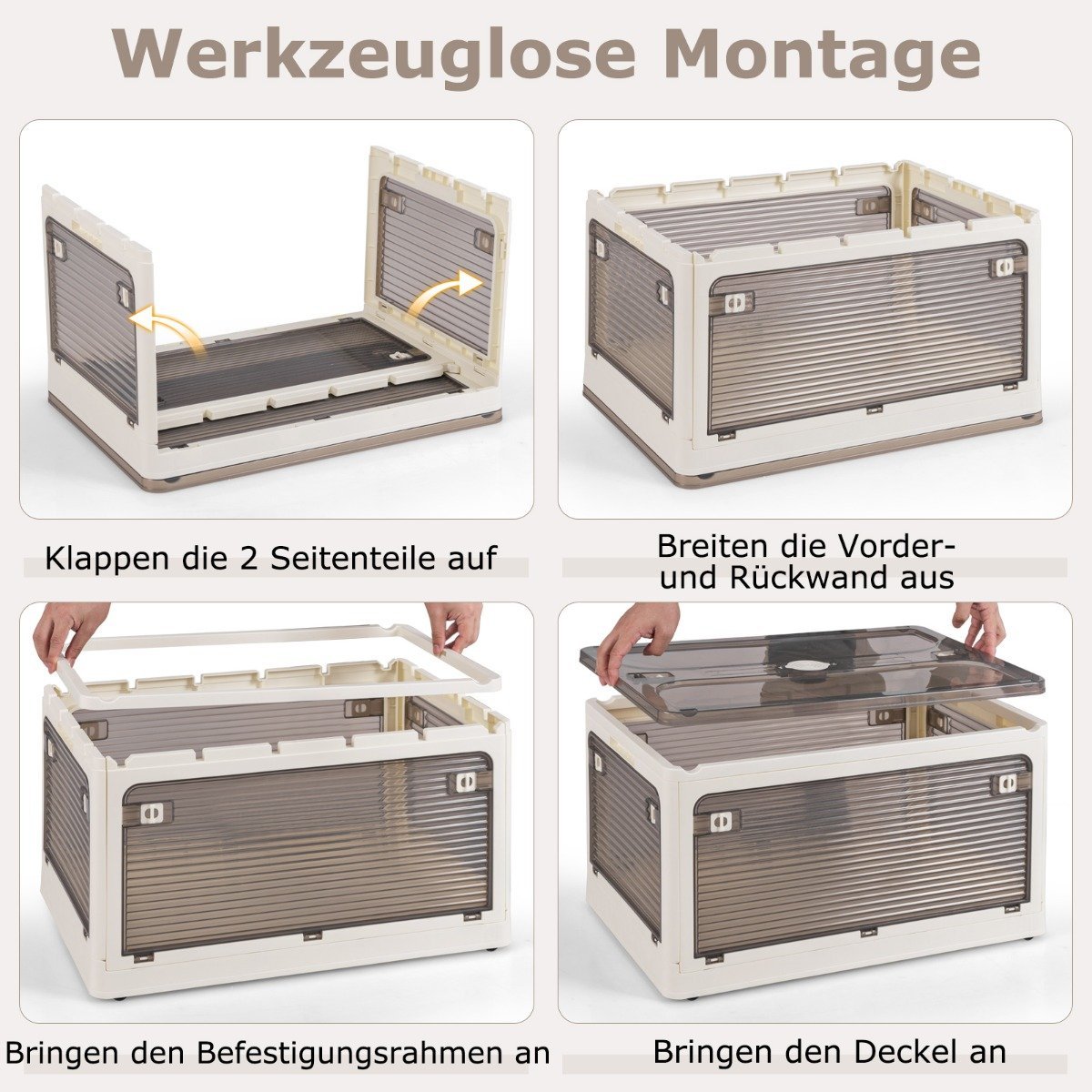 3 vnt. sulankstomos daiktadėžės su ratukais ir dangčiu (Kremas)