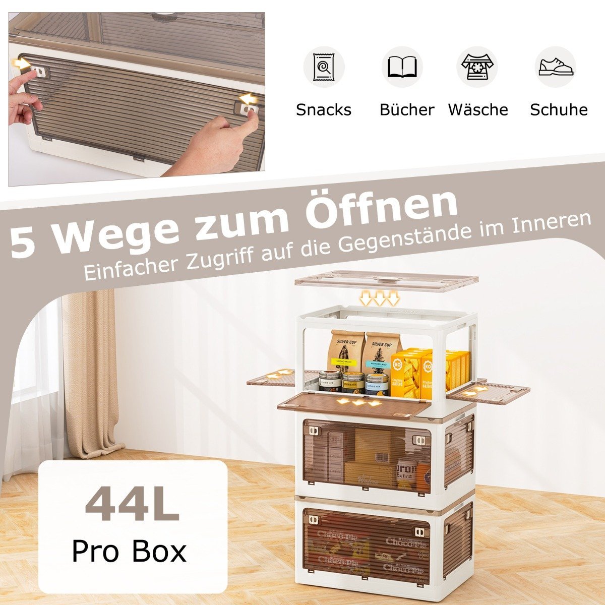 - Kiekvienos dėžės talpa: 44 l