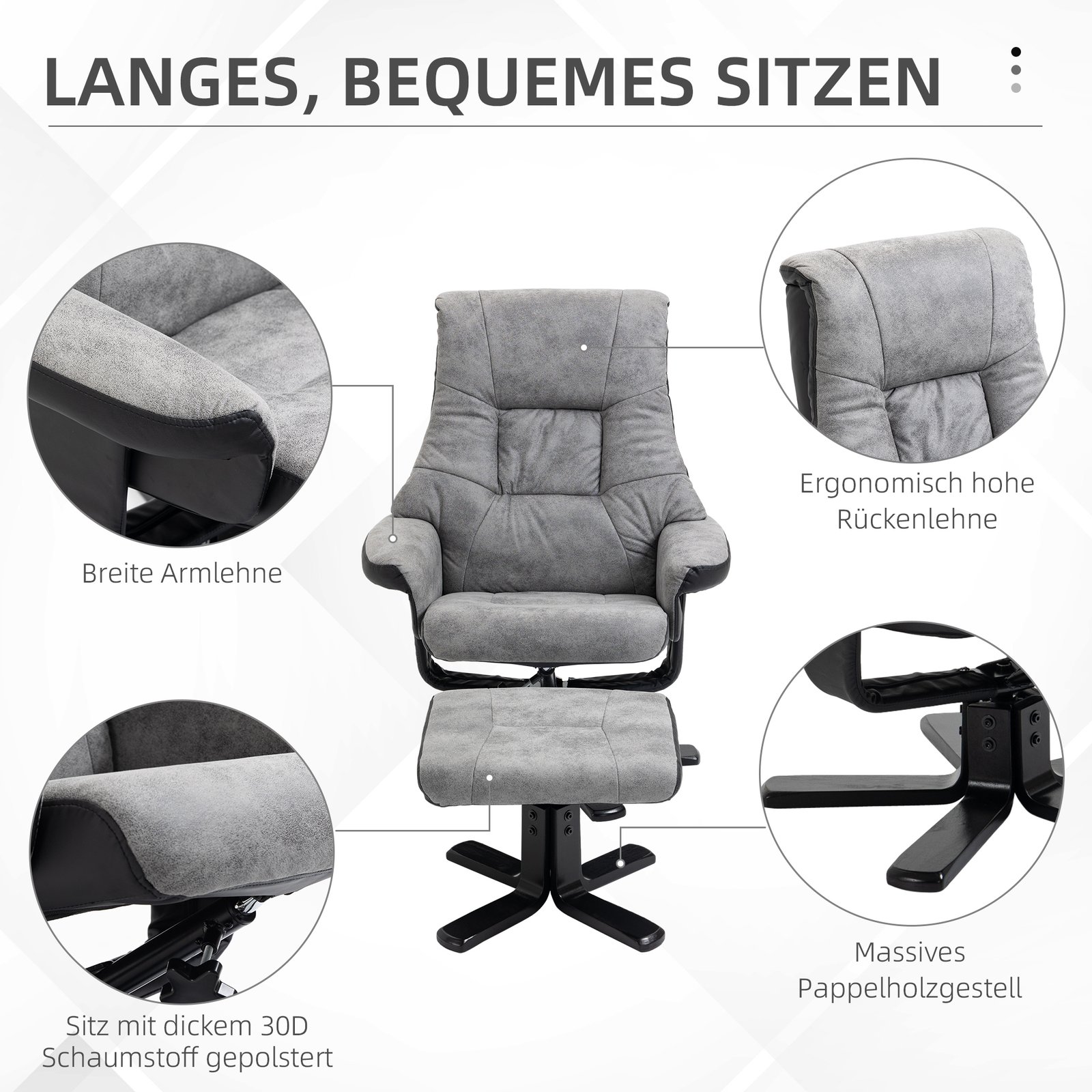 Su šiuo komplektu, sudarytu iš pasukamos televizoriaus kėdės ir pufas, sukursite jaukią ir patogią aplinką. Papildoma kojų atrama, storai paminkštinta sėdynė ir integruoti porankiai suteikia neįtikėtinai patogią vietą atsipalaiduoti. Bet tai dar ne viskas – dėl pasukimo rankenėlės kėdę galima atlošti iki 135 laipsnių, o tai suteikia puikią galimybę dienos pabaigoje atsipalaiduoti ir mėgautis nusipelnytu poilsiu.