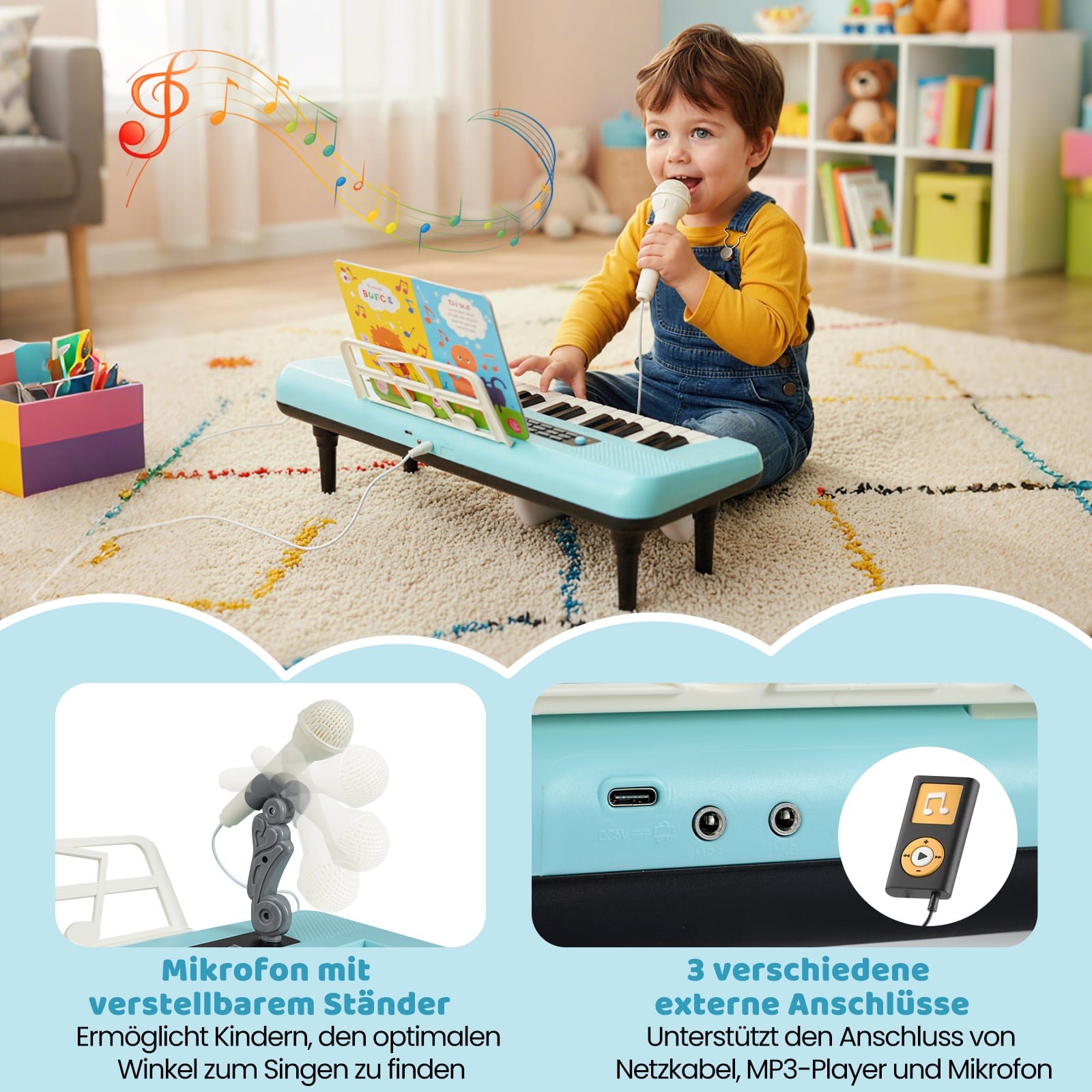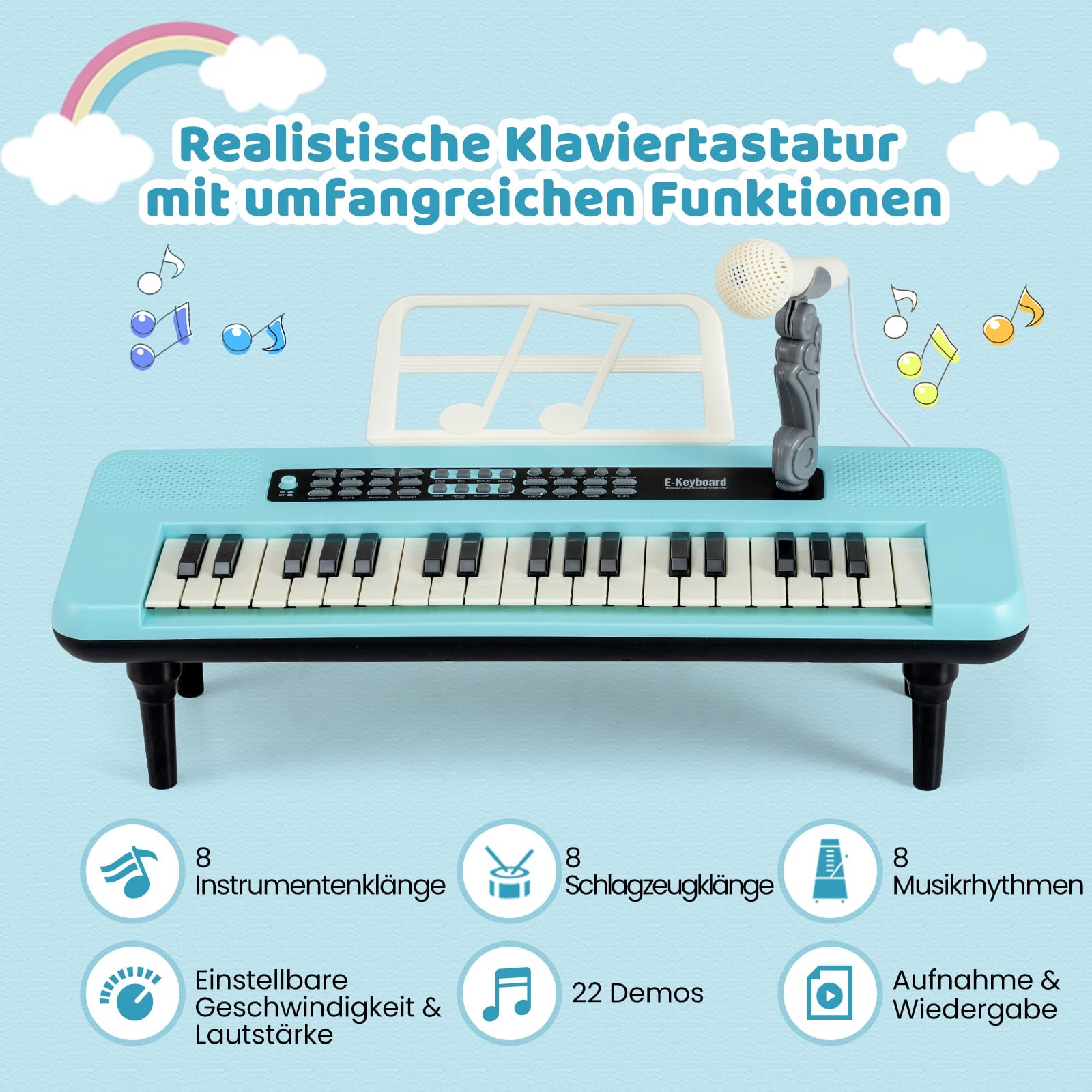 37 klavišų elektroninis pianinas vaikams su mikrofonu ir nuimamomis kojelėmis (Mėlyna)