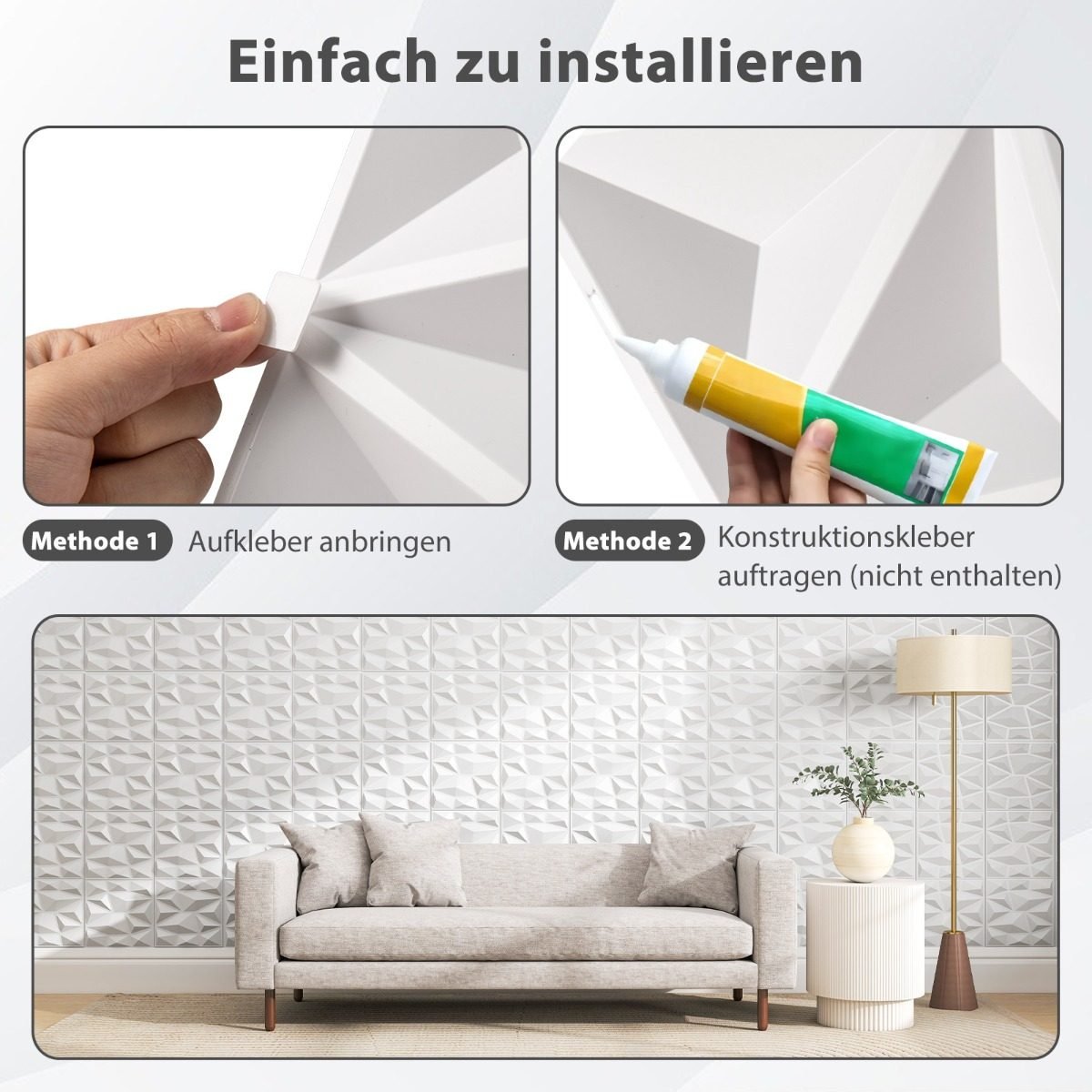 3D sienų panelės deimantų raštu (100 vnt.) (Balta)