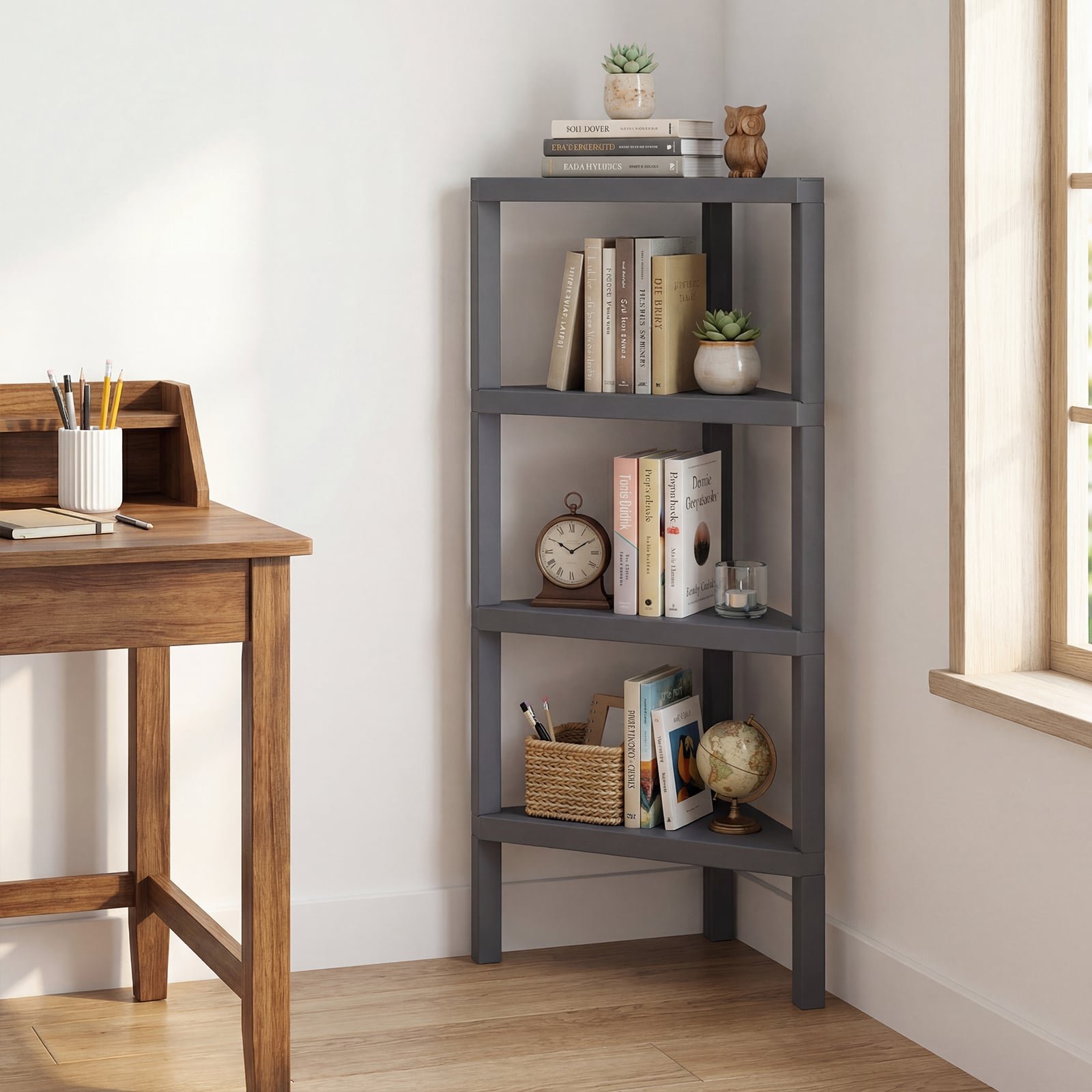 4 aukštų kampinė atvira lentyna (Pilka)