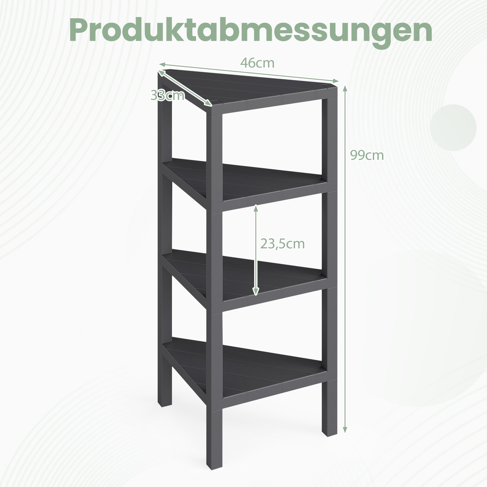 Atraskite tobulą praktiškumo ir elegancijos derinį su mūsų 4 aukštų kampine lentyna! Pagaminta iš tvirto PP plastiko, ši lentyna yra ilgaamžė ir atlaiko kasdienį naudojimą. Jos 4 atviros lentynos padeda palaikyti tvarką ir užtikrina patogų daiktų pasiekiamumą. Dėl 90° kampinio dizaino lentyna optimaliai išnaudoja kampus, taupydama erdvę, o 15 cm aukštis nuo grindų palengvina valymą. Universali ir funkcionali, ši lentyna pasižymi modernia išvaizda, puikiai tinkančia įvairiems interjero stiliams.