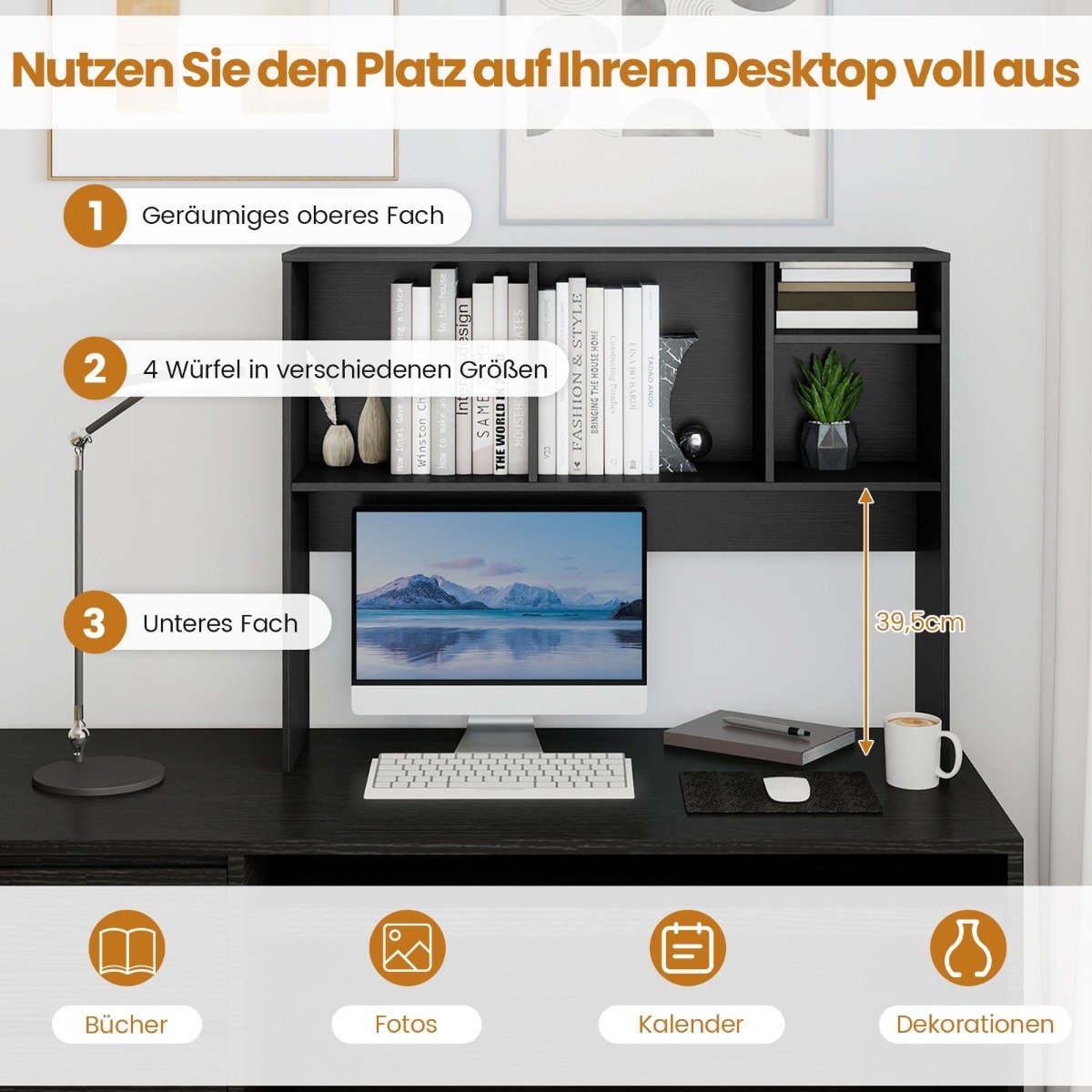 4 skyrių rašomojo stalo papildoma daiktų laikymo lentyna (Juoda)