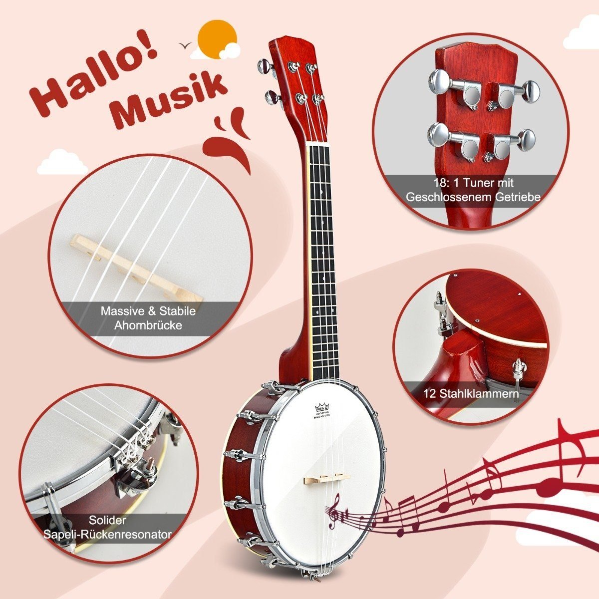 Pradėkite savo muzikinę kelionę su šiuo patogiu 4-stygų bandža, puikiai tinkančiu tiek pradedantiesiems, tiek patyrusiems muzikantams. Kompaktiškas dydis ir lengvas svoris leidžia jį lengvai pasiimti su savimi bet kur.