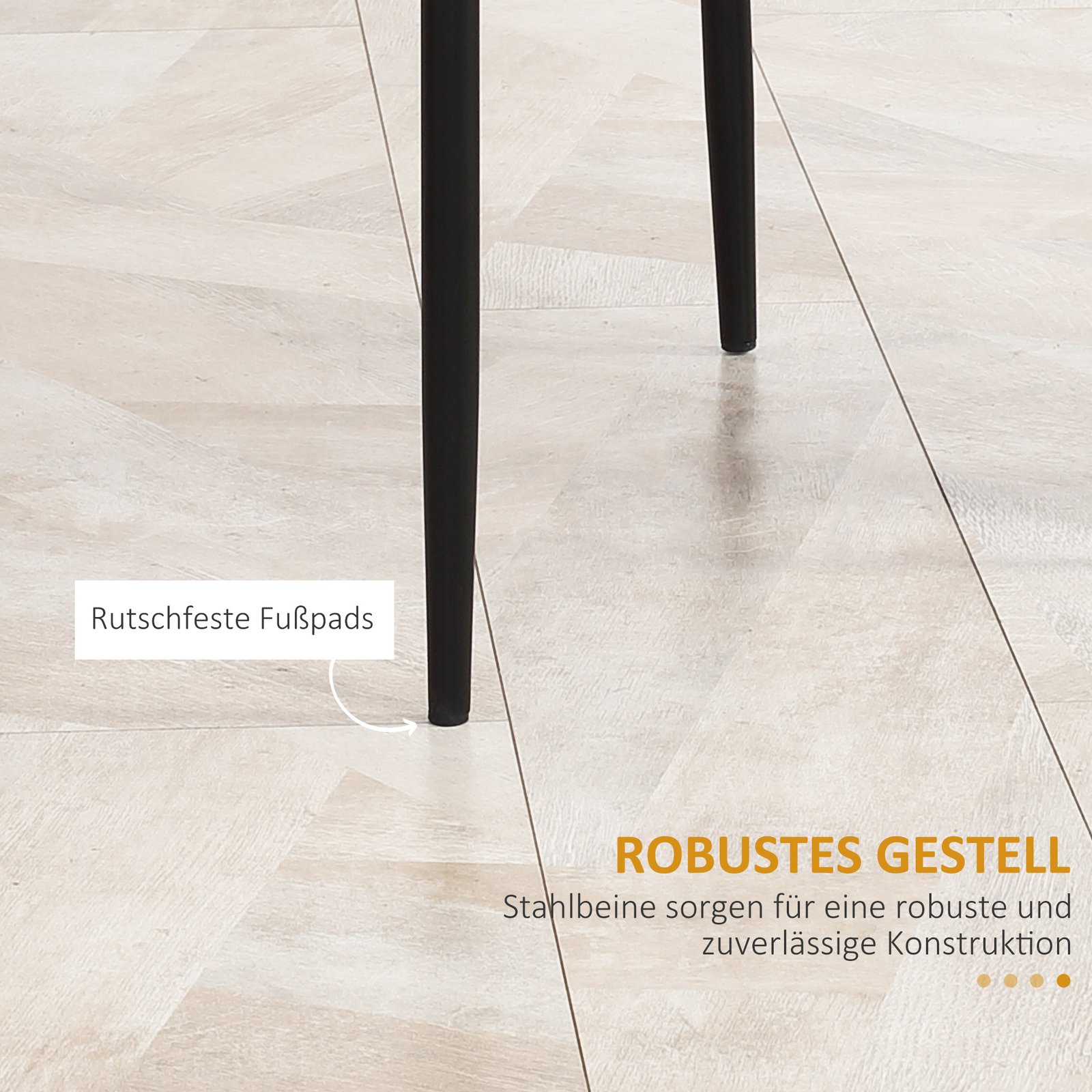 Sukurkite vietos kiekvienam savo svečiui: Virtuvės kėdžių komplektą sudaro 4 modernios kėdės. Jis tinka įvairiems interjero stiliams ir kiekvieniems namams. Aukštas atlošas užtikrina optimalią atramą. Paminkštinta sėdynė su dirbtinės odos apmušalais suteikia maksimalų komfortą. Plieninis rėmas daro valgomojo kėdes tvirtas ir tinkamas kasdieniam naudojimui. Siekiant išvengti įbrėžimų, kėdės yra su grindų apsaugomis.