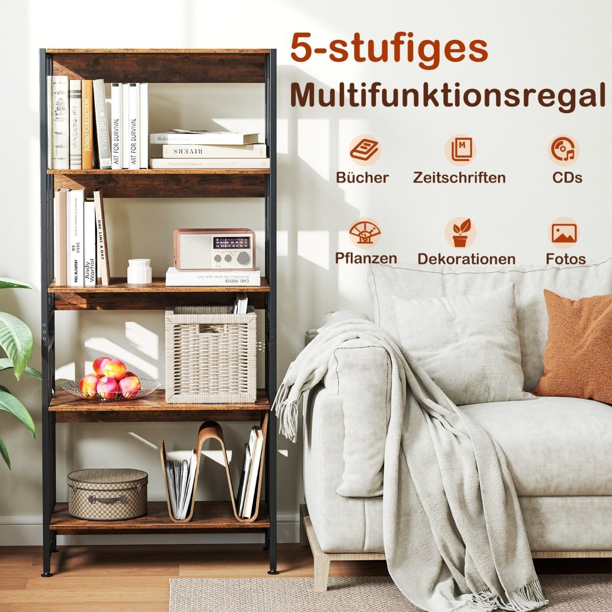 5 aukštų pramoninio stiliaus knygų lentyna (Rustiška ruda)
