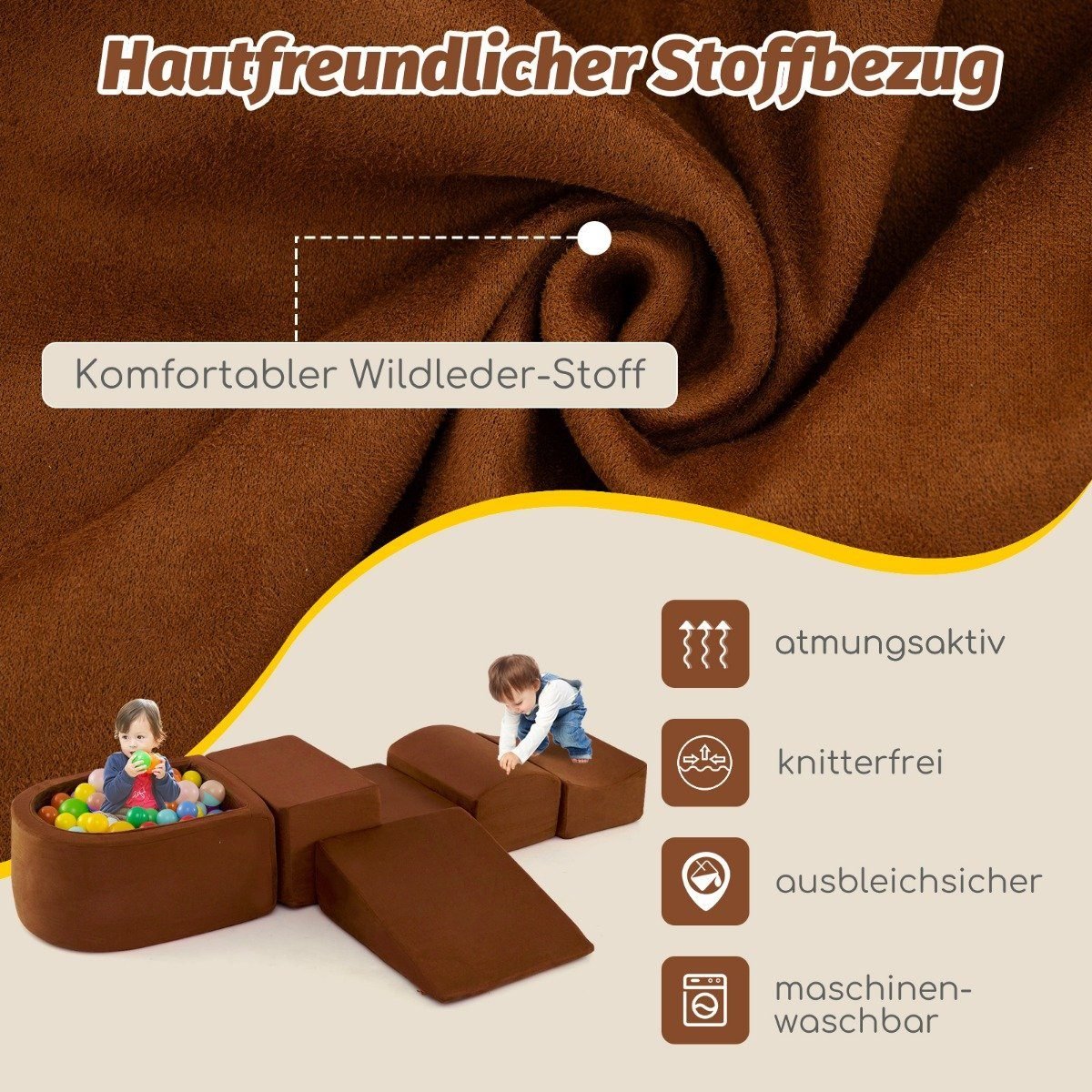 5 dalių minkštų laipiojimo blokų komplektas su kamuoliukų baseinu (Ruda)