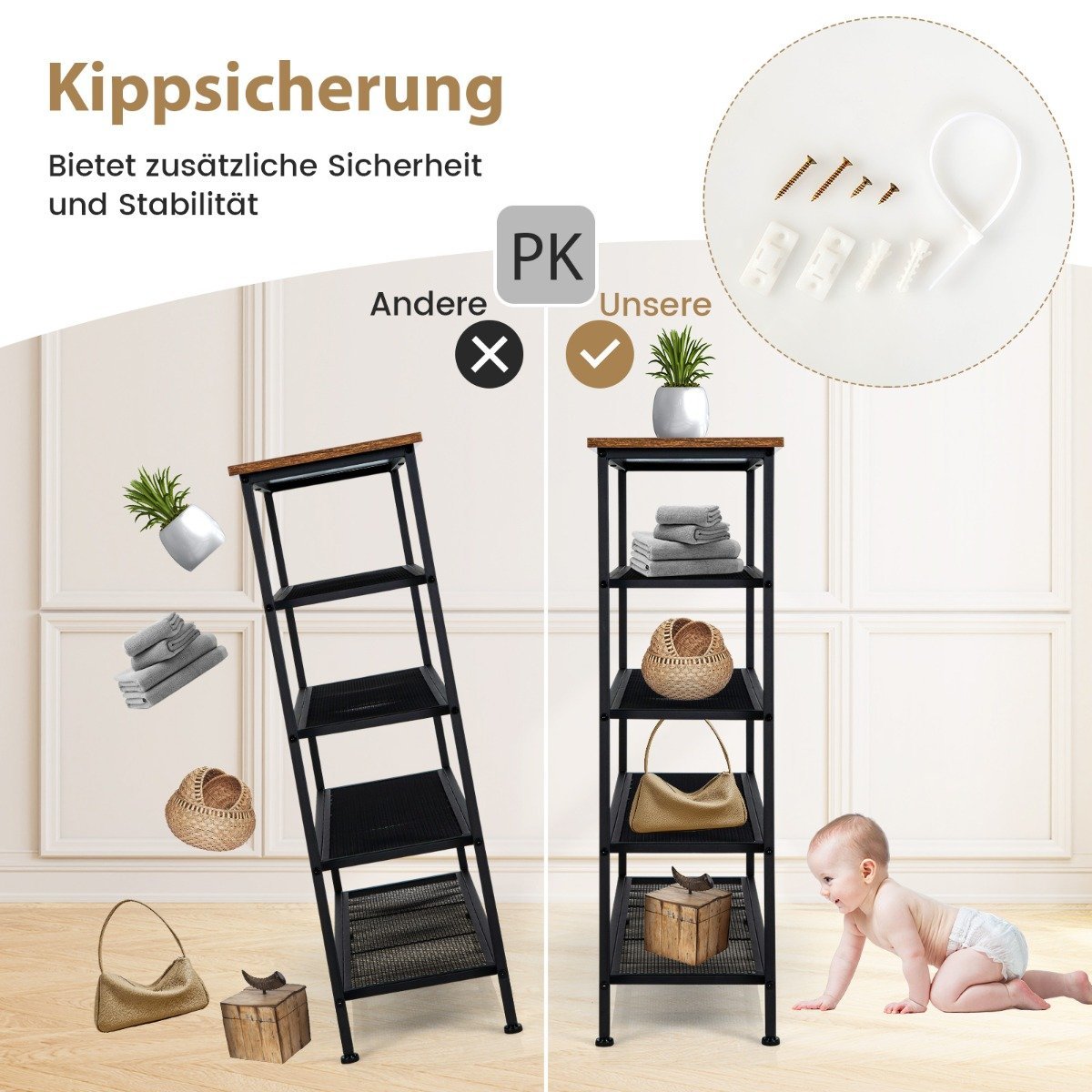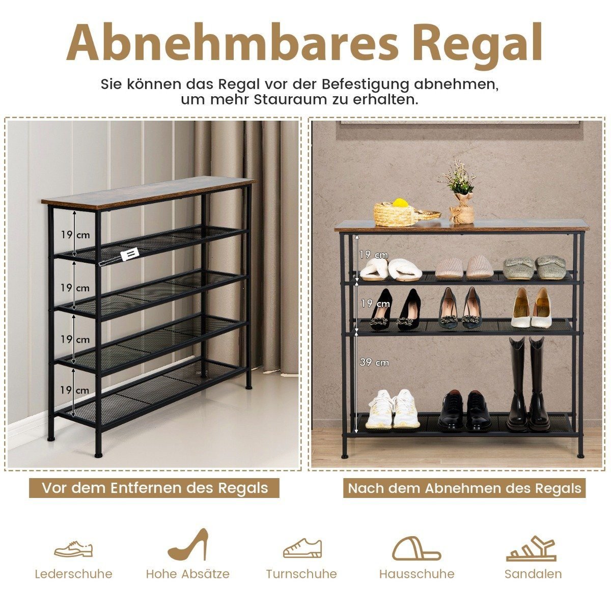 5 pakopų metalinis batų stovas su išimamomis lentynomis (Ruda)